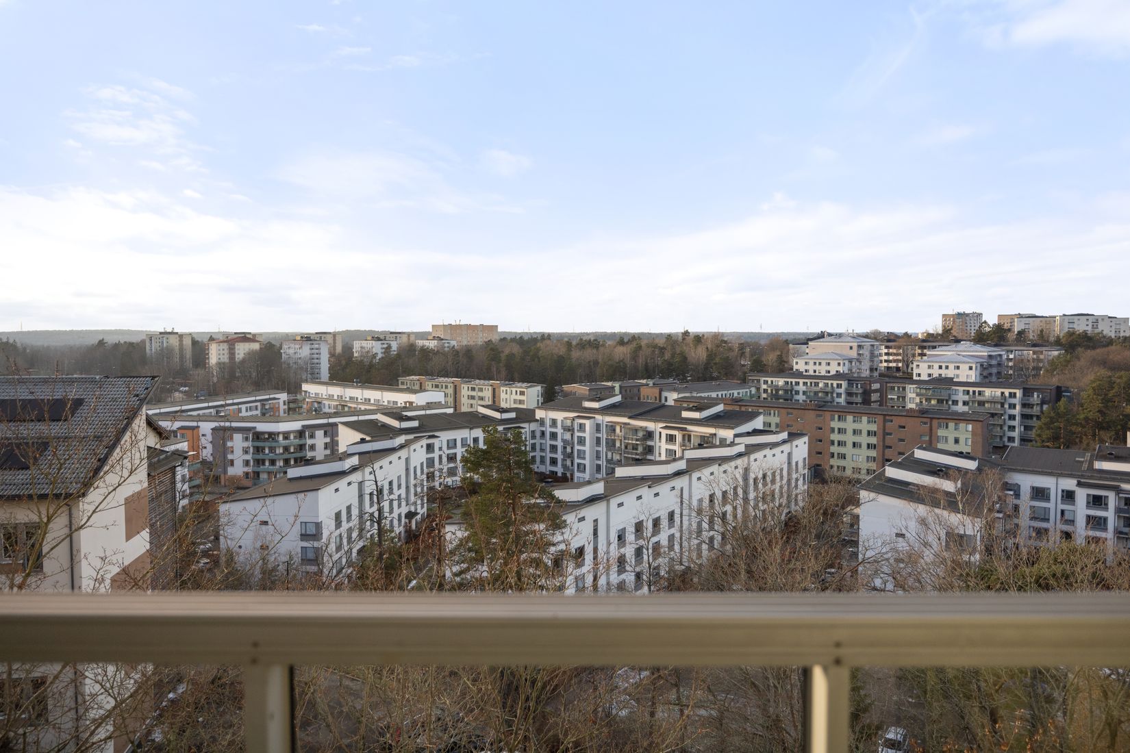 Den rymliga, inglasade balkongen i optimalt västläge blir ett extra rum stora delar av året – perfekt för avkoppling, middagar eller kvällssolen som glittrar över området.
