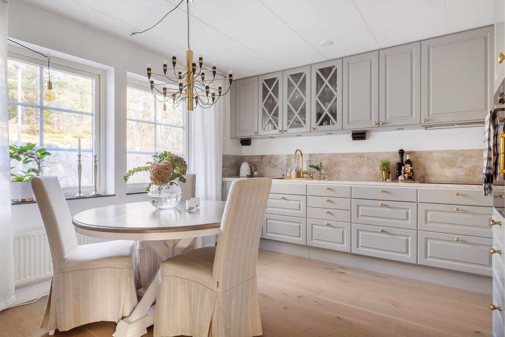 På entréplan möts ni av ett elegant och stilrent kök med gott om arbetsyta och plats för ett stort matbord – perfekt för långa frukostar och härliga middagar med familj och vänner. Det luftiga vardagsrummet bjuder på en varm atmosfär, inte minst tack vare den mysiga braskaminen som gör vinterkvällarna extra ombonade. Härifrån når ni också den soliga altanen där ni kan njuta av lugnet, grilla på sommarkvällarna och låta barnen springa fritt i tryggheten runt huset.