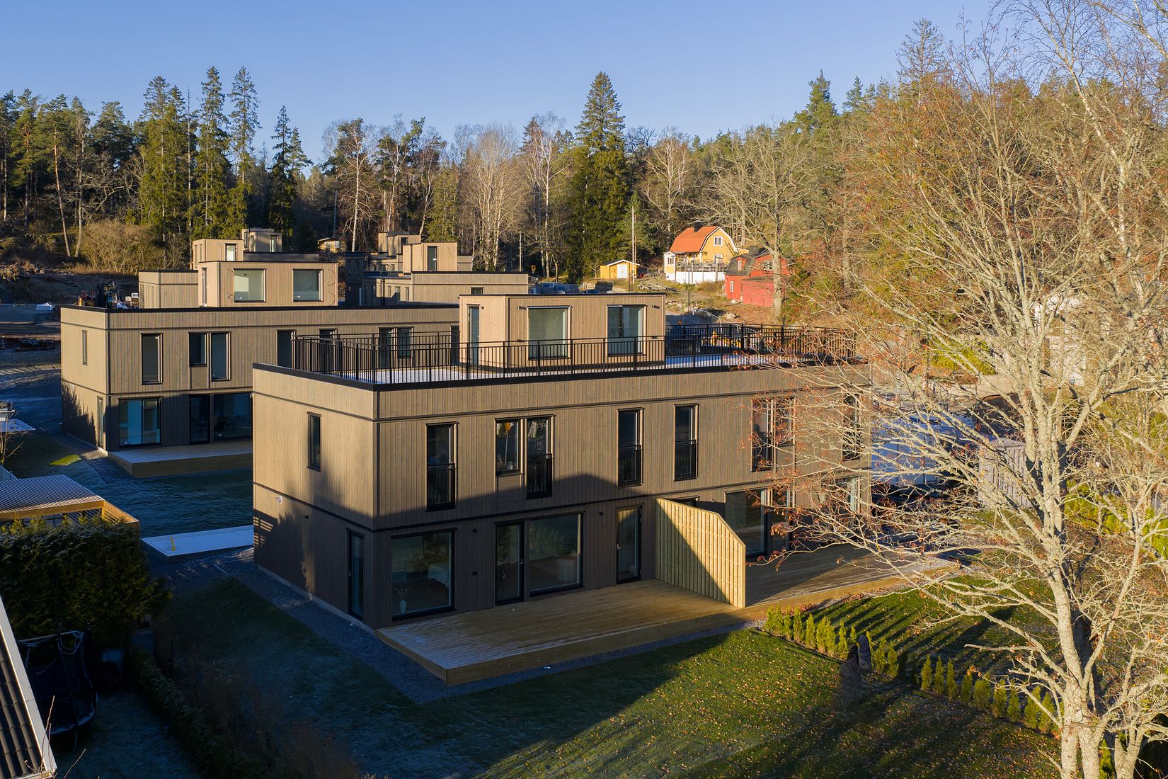 Projektet består av totalt 21 bostäder, 14 parhus och 7 studiohus. Inflyttning beräknas från Q1 2026.
