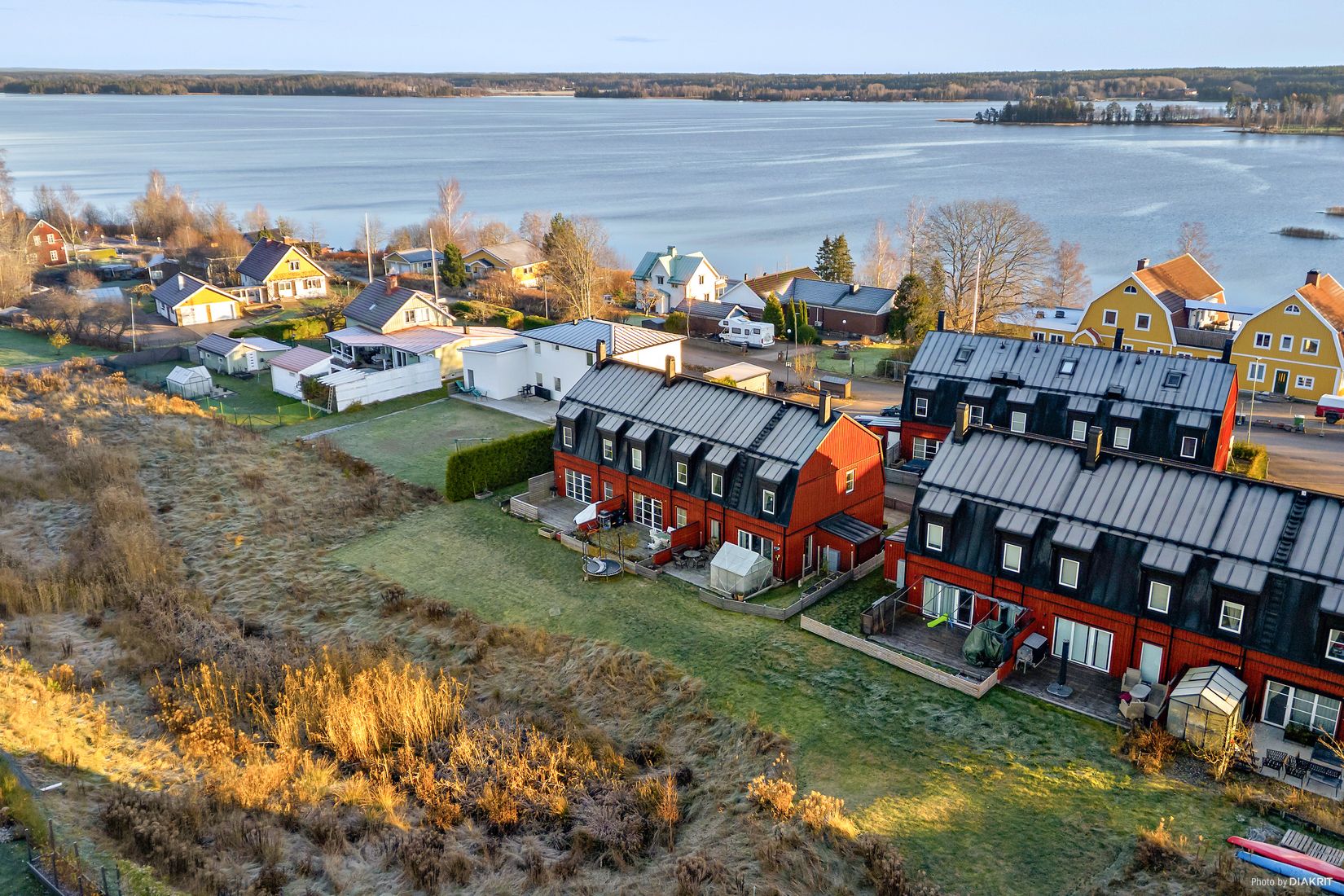 Radhuset som är fördelat på tre våningsplan rymmer 3–4 sovrum, tvättstuga, två helkaklade badrum samt två uteplatser med sol under hela dagen. Radhuset värms upp av föreningens effektiva bergvärmepump via vattenburen golvvärme på entréplanet och resterande radiatorer. Det övre planet erbjuder härlig rymd med ytterligare ett allrum/sovrum med en mysig braskamin som förstärker den lyxiga atmosfären.