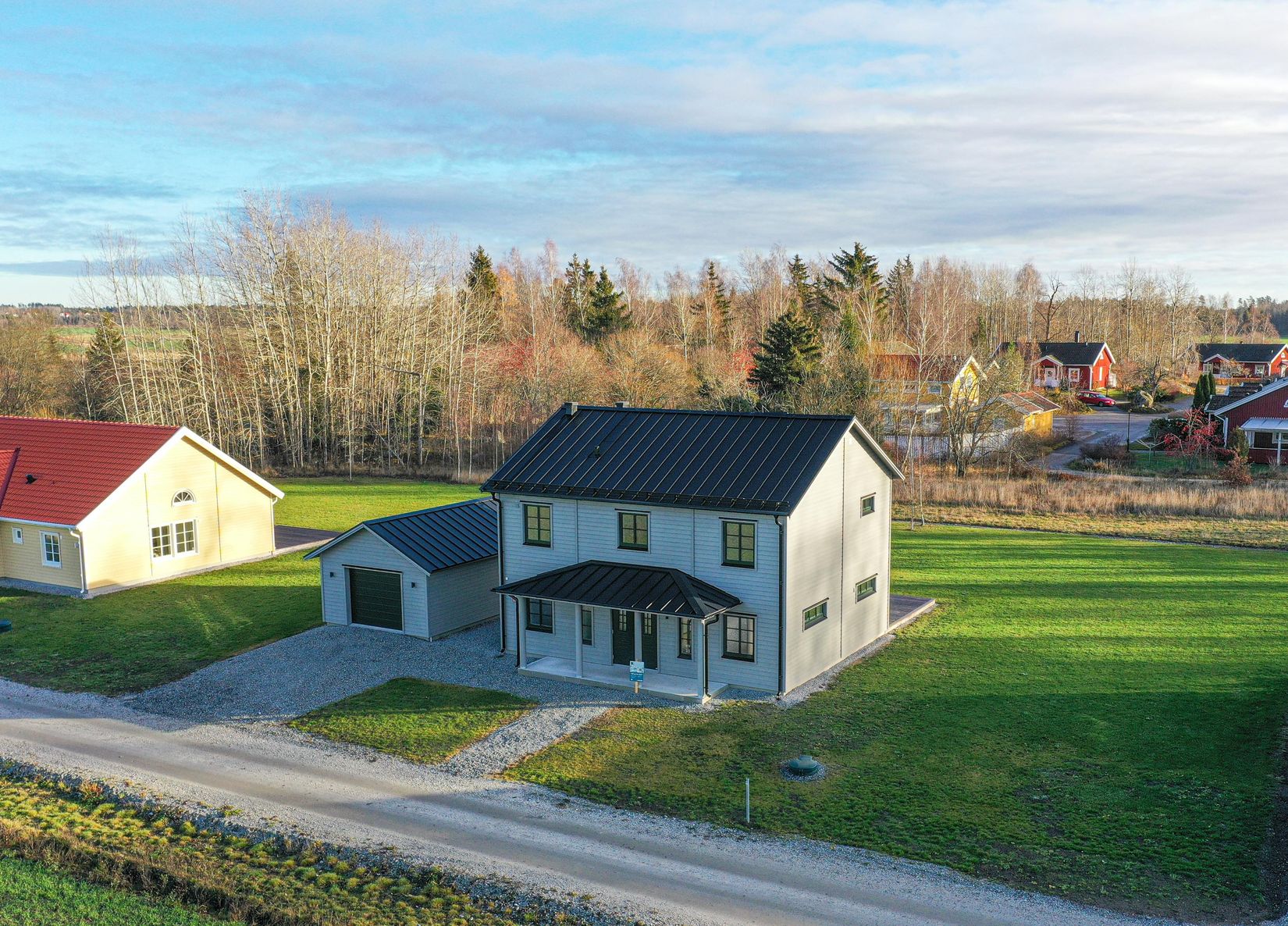 Huset levereras färdigmålat med finplanerad tomt, en härlig gräsmatta, grusade gångar och en altan på trädgårdssidan för fina sommardagar. Här finns även ett garage med isolerat förråd, smakfull fasadbelysning och bredbandsfiber indraget i huset.