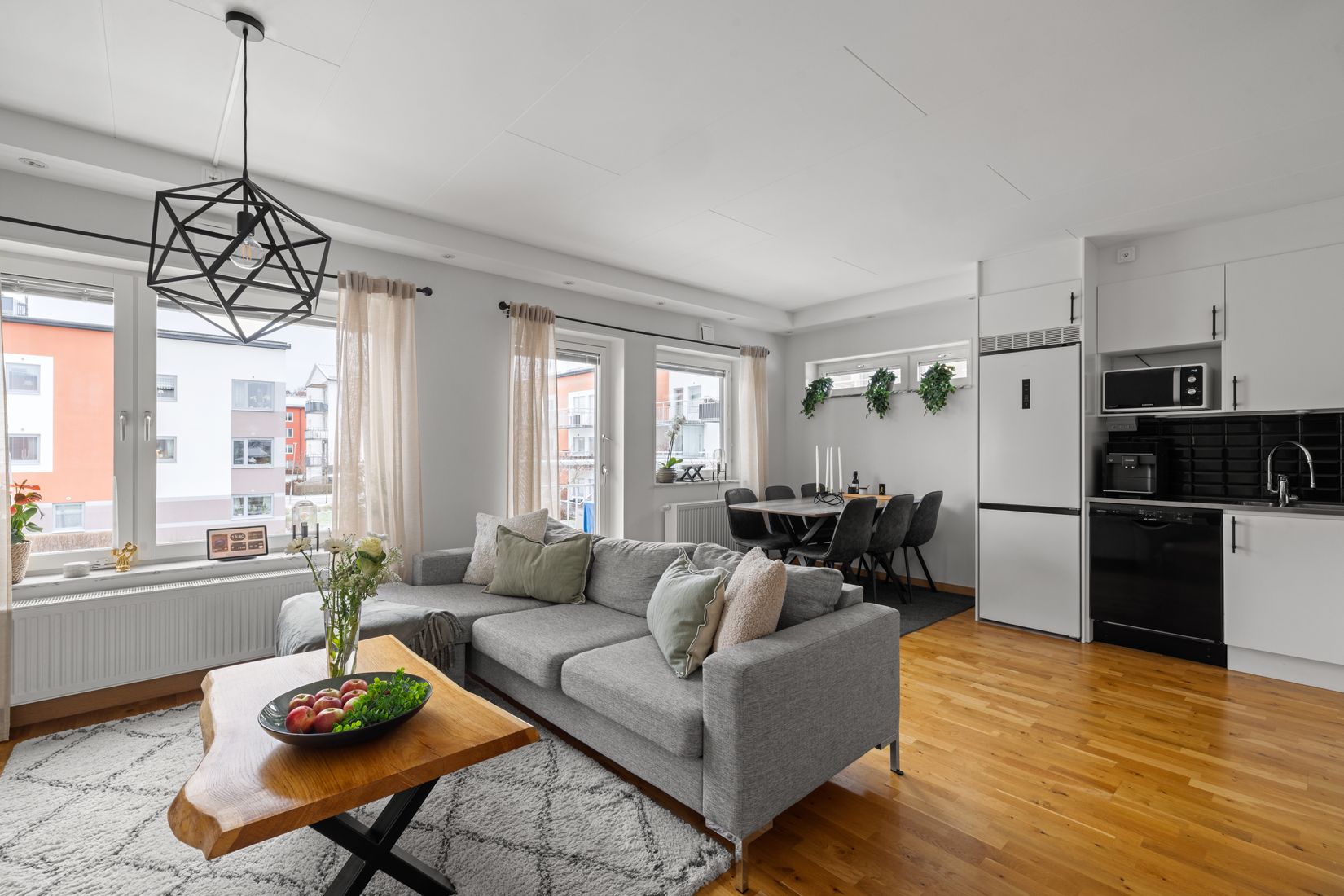 Välkommen hem till denna trivsamma och moderna tvåa med genomtänkt planlösning, härligt ljusinsläpp och en solig balkong i sydvästligt läge! Här bor du bekvämt med både charm och funktion, i ett område med utmärkta kommunikationer och närhet till all vardagsservice.
