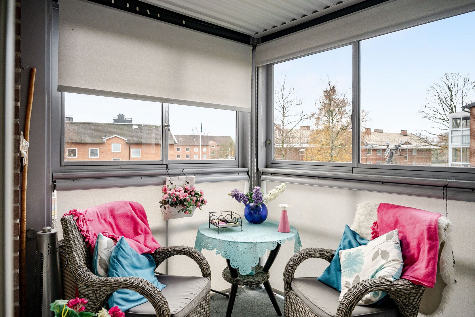 Välkommen till en ljus och trivsam gavellägenhet i en stabil och välskött förening. Här bor du med fönster i tre väderstreck och en rymlig inglasad balkong i eftertraktat västerläge – perfekt för avkoppling under tre av årets fyra årstider. Lägenheten har en välkomnande hall med god förvaring, ett luftigt vardagsrum med utgång till balkongen, samt ett generöst kök med matplats för hela familjen. Sovrummet erbjuder bra ytor och praktisk garderobsvägg. Det helkaklade badrummet renoverades i samband med föreningens stambyte och är utrustat med tvättmaskin. Här bor du på en lugn adress med närhet till centrum och goda kommunikationer – ett hem som kombinerar komfort, ljus och ett attraktivt läge. Våning 3 av 3.