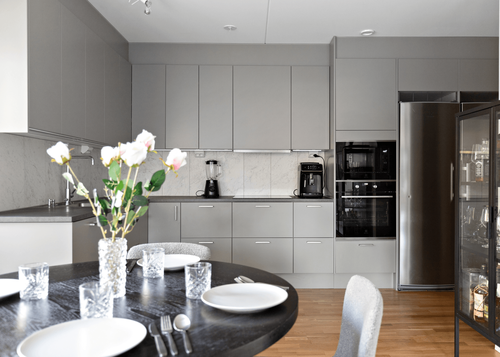 Lägenheten är välplanerad i ett eftertraktat gavelläge som ger ett fantastiskt ljusflöde genom bostaden. Redan i hallen möts du av den stilrena och genomtänkta design som präglar hela hemmet. Den öppna planlösningen mellan kök och vardagsrum skapar en inbjudande och social yta, perfekt för både vardag och umgänge. Det moderna Marbodalköket är fullt utrustat med bland annat kyl & frys i fullhöjd och håller den höga nivå som förväntas av ett nyproducerat boende.