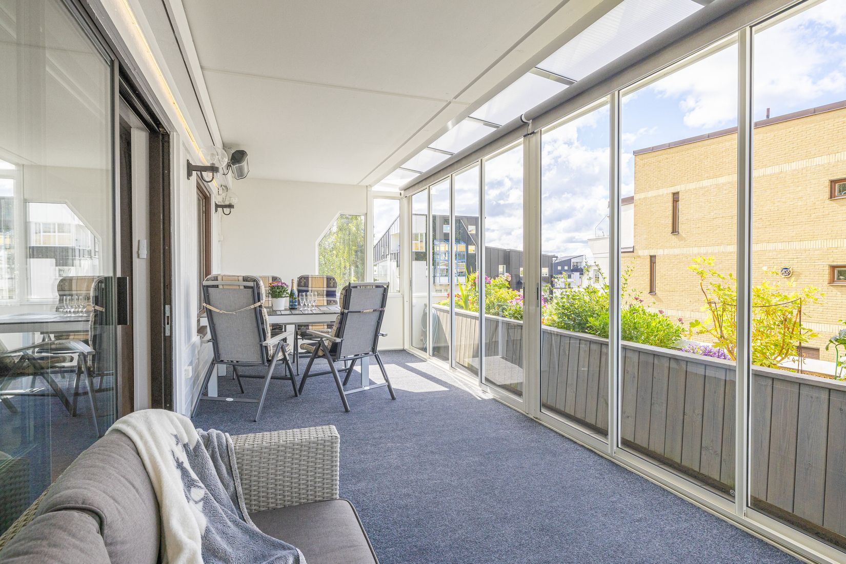 I lugna och naturnära Runby säljs nu denna fint renoverade lägenhet om 3 rok med cirka 21 kvm terrass med inglasning i populära Brf Övre Runby. Här har ni chansen att köpa en inflyttningsklar bostad. Denna lägenhet har renoverats med både fint kök och 2 st badrum samt snygga golv och väggar. Ena badrummet har dusch och andra badrummet har tvättdel och badkar. Under år 2024 har ägarna installerat en exklusiv inglasning på terrassen. Det finns Plejdsystem för smart styrning av hemmet installerad i bostaden. Luftig, öppen och yteffektiv planlösning med gott om möjlighet till förvaring. Bostaden är genomgående med fönster på båda sidor om huset vilket ger gott om ljusinsläpp. Terrassen ligger med ett läge härligt västläge vilket innebär sol i stort sett hela dagen och kvällen. Separat förråd ligger i samma hus.