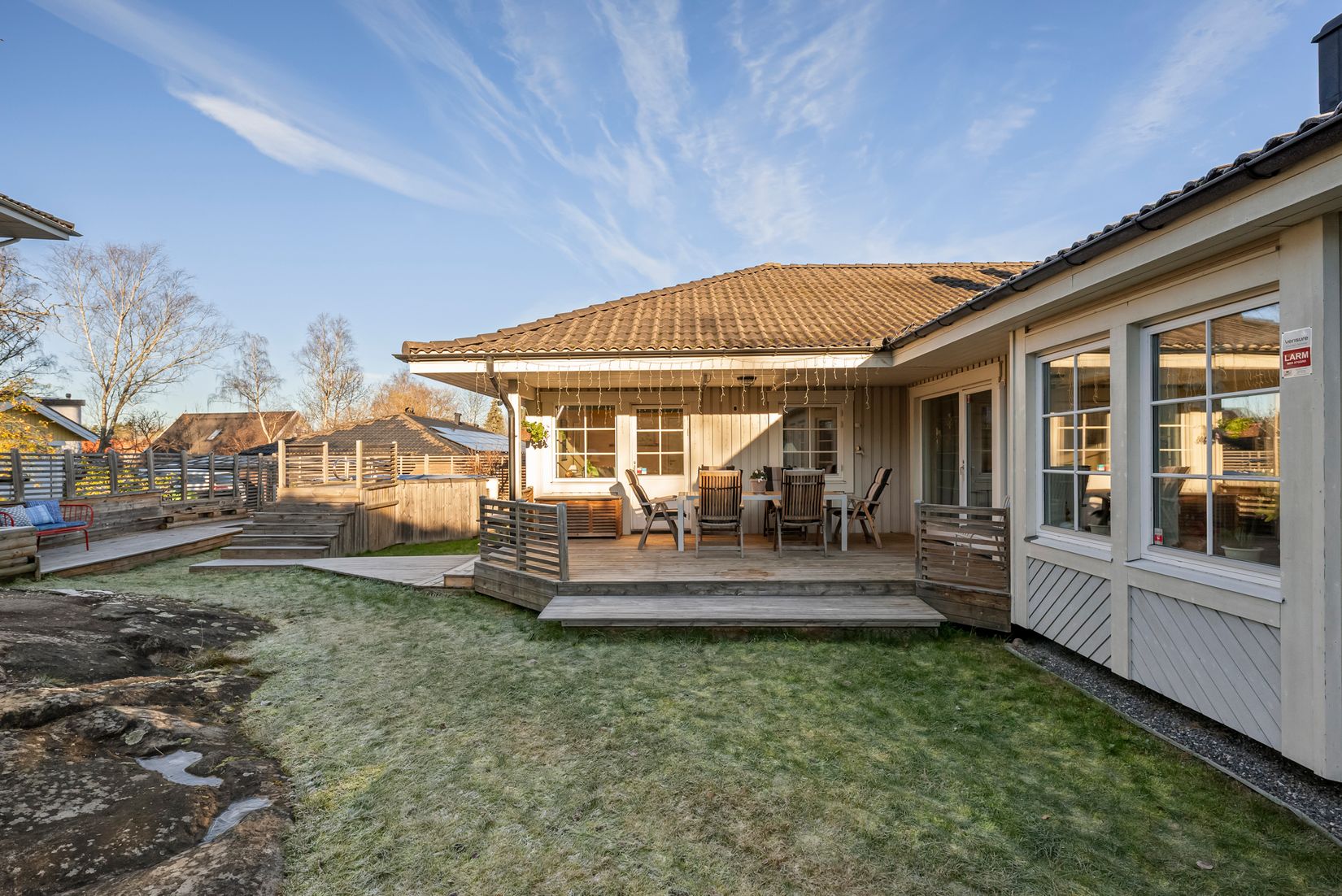 Hela huset präglas av generösa ytor: stort kök, stort vardagsrum, stora sovrum, stort och mindre badrum och dessutom en rymlig tvättstuga med groventré och utgång till det fristående, värmeisolerade garaget.