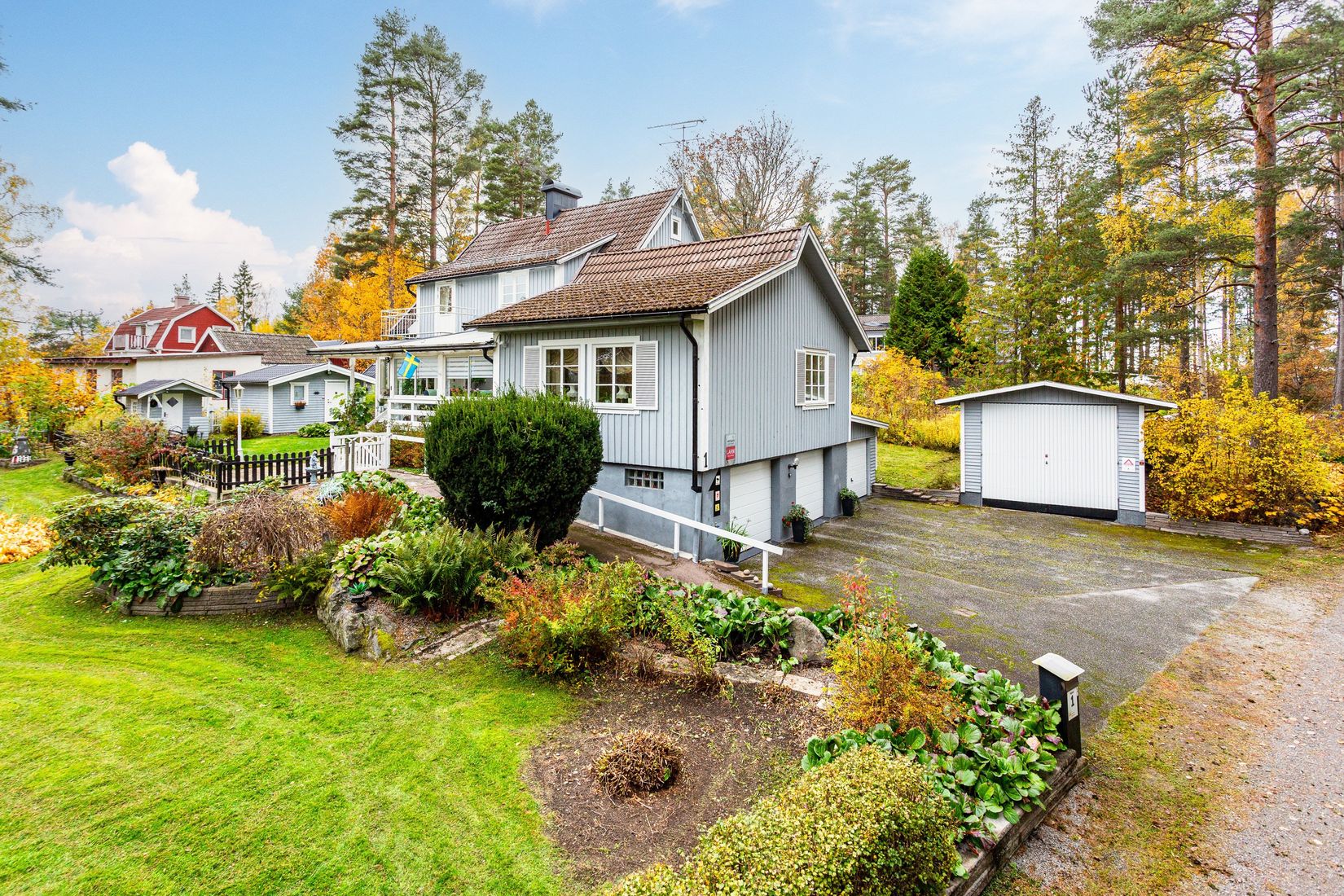 Villa med generösa utrymmen intill förskola och skola, på fastigheten finns 3 garage, husbilsgarage, uthus, stor trädgårds- och naturtomt. Villan erbjuder 2-4 sovrum, kök med matrum intill, stort vardagsrum, sep.wc och dusch/wc, uppvärmning via bergvärme och bra förvaringsutrymmen mm.