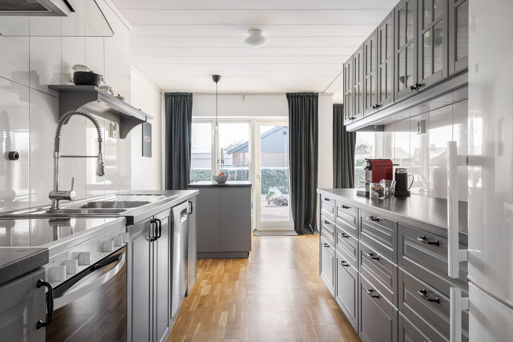 Ett stort plus är den rymliga tvättstugan med vidare passage till det vidbyggda garaget med elport – en smidig lösning särskilt under årets kallare månader. Läget är lugnt och familjevänligt med gångavstånd till grönområden, lekplats, förskola, skola, tågstation och GEMA-livs.