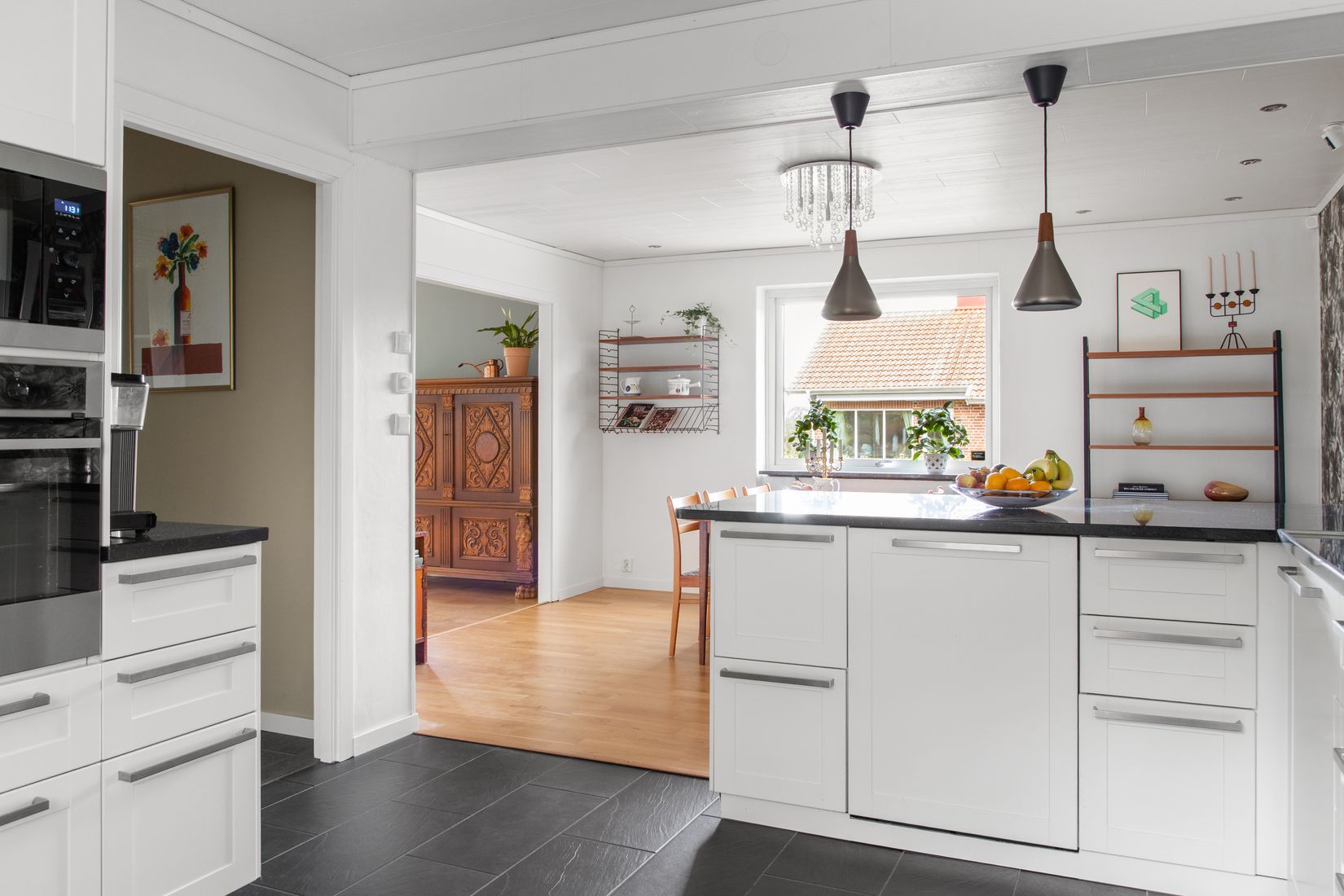 Entréplanet genomgick en omfattande renovering 2014. En vägg mellan kök och matplats togs bort för att skapa en modern och luftig planlösning med stora sociala ytor. Samtidigt drogs nya elledningar och vattenburen golvvärme installerades i dessa rum – en uppskattad detalj under årets kallare månader. Köket, matplatsen och vardagsrummet binds samman på ett naturligt och inbjudande sätt. I vardagsrummet väntar en stämningsfull öppen spis med insats som sprider både värme och trivsel. Innanför vardagsrummet finns ett sovrum som enkelt kan tas bort för den som önskar ännu större sällskapsytor. På övre plan finns två väl tilltagna sovrum, varav det ena med en mysig balkong i soligt sydvästläge. I hallen utanför sovrummen finns gott om förvaring tack vare flera inbyggda garderober. Här ligger även ett smakfullt, nyrenoverat badrum utrustat med både dusch och badkar. Här kan man njuta av ett avkopplande bad i lugn och ro och låta blicken vila mot den rogivande skogen på baksidan. Källarplanet erbjuder ytterligare utrymmen som gör vardagen smidig och funktionell. Här finns en rymlig tvättstuga, ett gym- eller hobbyrum, pannrum samt flera fina förrådsutrymmen som ger utmärkt ordning och struktur.