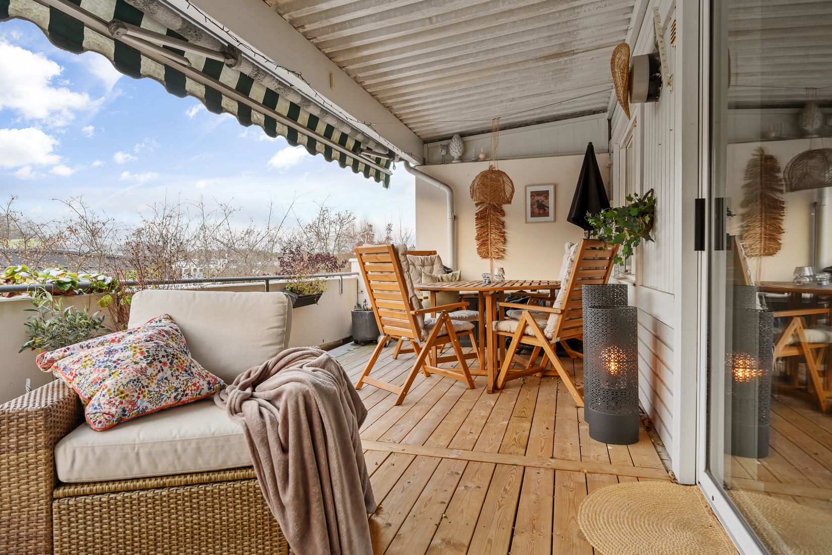 En av bostadens absoluta höjdpunkter är den rymliga terrassen, som har ett perfekt solläge. Här kan du njuta av solens värmande strålar under större delen av dagen, en idealisk plats för både avkoppling och umgänge.