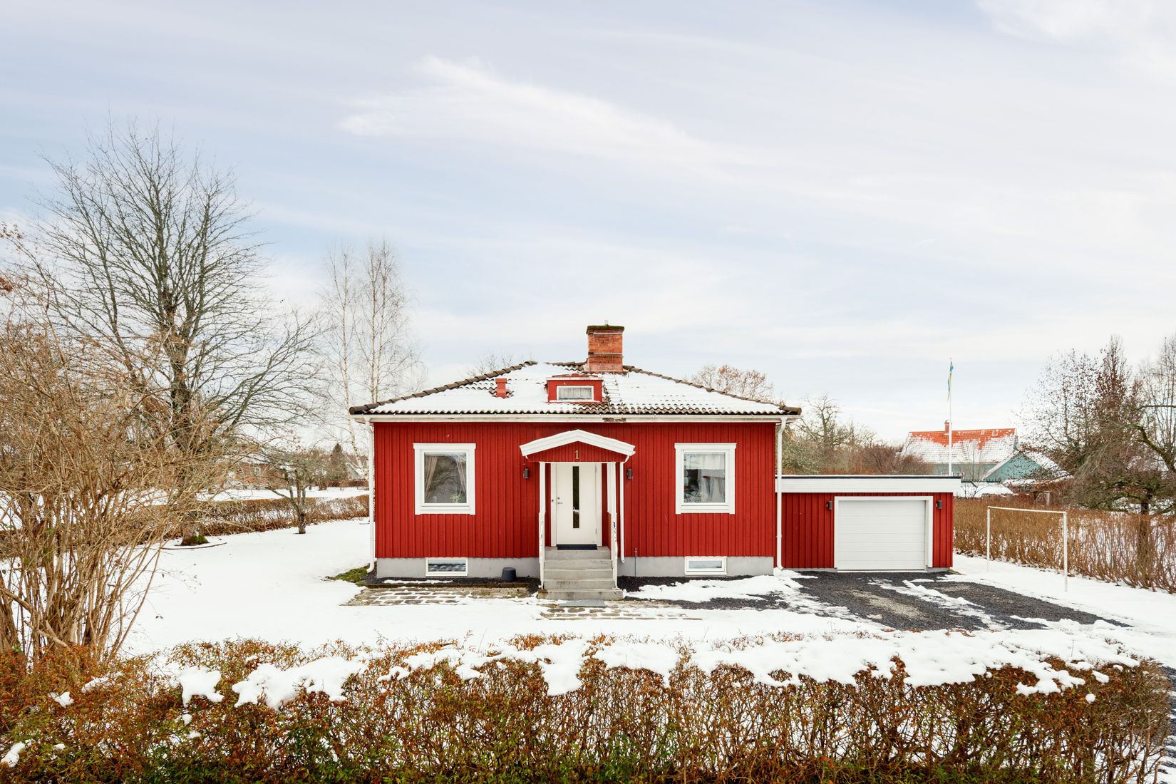 Till huset hör också ett garage med tillhörande uppfart. Tomten är plan och lättskött och ger gott om plats för lek, odling eller bara att koppla av i solen. Den inbjudande uteplatsen med trätrall och inglasat uterum blir ett perfekt komplement.