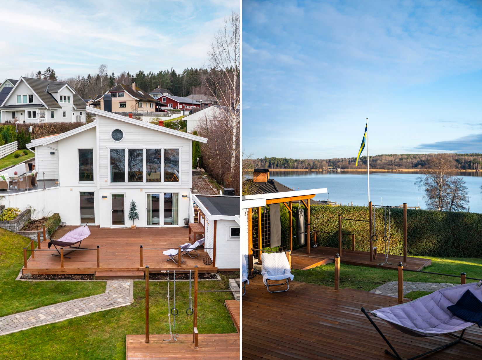 Redan i hallen möts ni av ljus, rymd och generös takhöjd. Husets hjärta är det stora vardagsrummet och matrummet i öppen planlösning med köket. De stora fönsterpartierna ramar in utsikten mot Mälarens glittrande vatten och låter ljuset flöda fritt genom rummet. Här finns även en stämningsfull braskamin som sprider värme och trivsel både mot vardagsrummet och matplatsen. Från denna del av huset når ni en härlig uteplats - en perfekt plats för dagens första kaffe med utsikt över fjärden.
