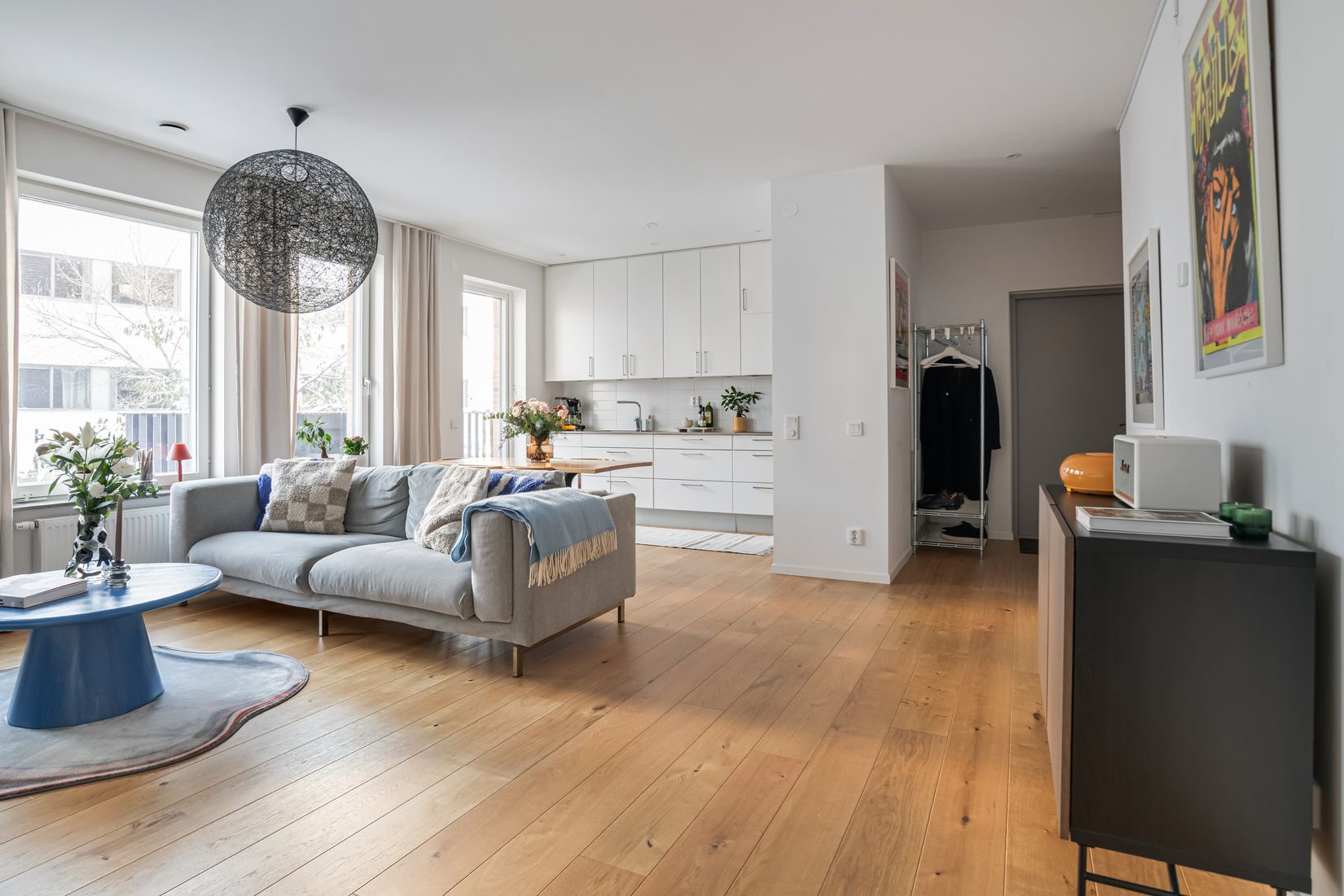 Det rogivande sovrummet är tilltaget i storlek och erbjuder god förvaring genom platsbyggda garderober, och det stora badrummet är stilrent och utrustat med både tvättmaskin och torktumlare, för att enkelt lösa vardagsstressen.