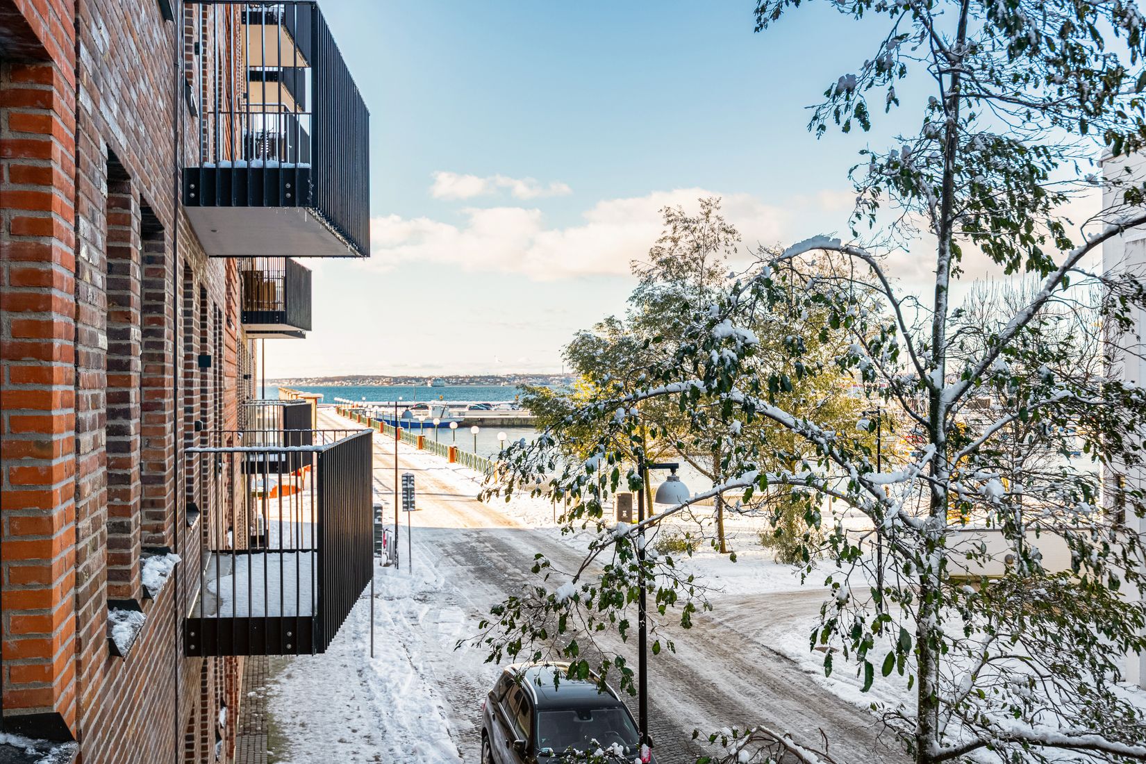 På en av Helsingborgs mest exceptionella lägen låg den gamla parkeringen. ANNO 2018 reste sig detta prestigeprojekt med hjälp av en av Sveriges genom tiderna mest erkända arkitekter, Gert Wingårdh. Han fick som uppdrag att gå från parkering till att skapa en harmonisk symbios mellan det äldre och det nya vilket han i synnerhet lyckades med på ett mycket imponerade vis. Materialvalen är tilltalande och påkostade, husens vackra arkitektur och den vackra utlandskänslan man får av den anlagda grönskan mellan huskropparna och kajpromenaderna. Ett stenkast bort når du dessutom till stadskärnans rika utbud av service, kultur och nöjen samtidigt som du alltid har nära hem. Här i hjärtat av Helsingborg har du dessutom knappt 5 minuters promenad till Knutpunktens buss-/tåg och båtförbindelser mot Kastrup och kontinenten.