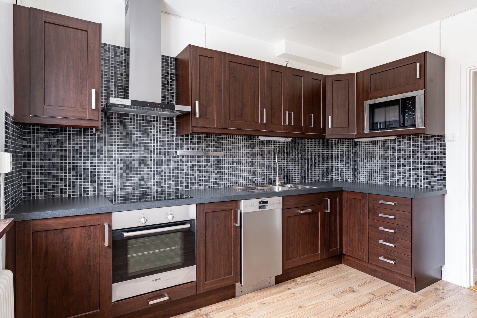 Bostaden bjuder på ett rymligt vardagsrum med parkettgolv och härligt ljusinsläpp. Här finns gott om utrymme för både soffgrupp och matplats, perfekt för såväl vardag som sociala stunder. Köket är elegant med mörka skåpluckor och moderna maskinval. Diskmaskin, kyl/ frys, induktionshäll, ugn, inbyggd mikro samt en stilfull fläkt gör matlagningen enkel och inspirerande. Här finns plats för matbord vid fönstret och ger en trivsam köksmiljö. Sovrummet är rogivande och möblerbart med dubbelsäng samt bra förvaringsmöjligheter. Duschrummet är helkaklat och praktiskt med dusch, wc och handfat. I den långsträckta hallen möts du av både fin rymd och utmärkta avhängningsmöjligheter med inbyggda garderober som håller ordning på hemmets alla tillhörigheter.