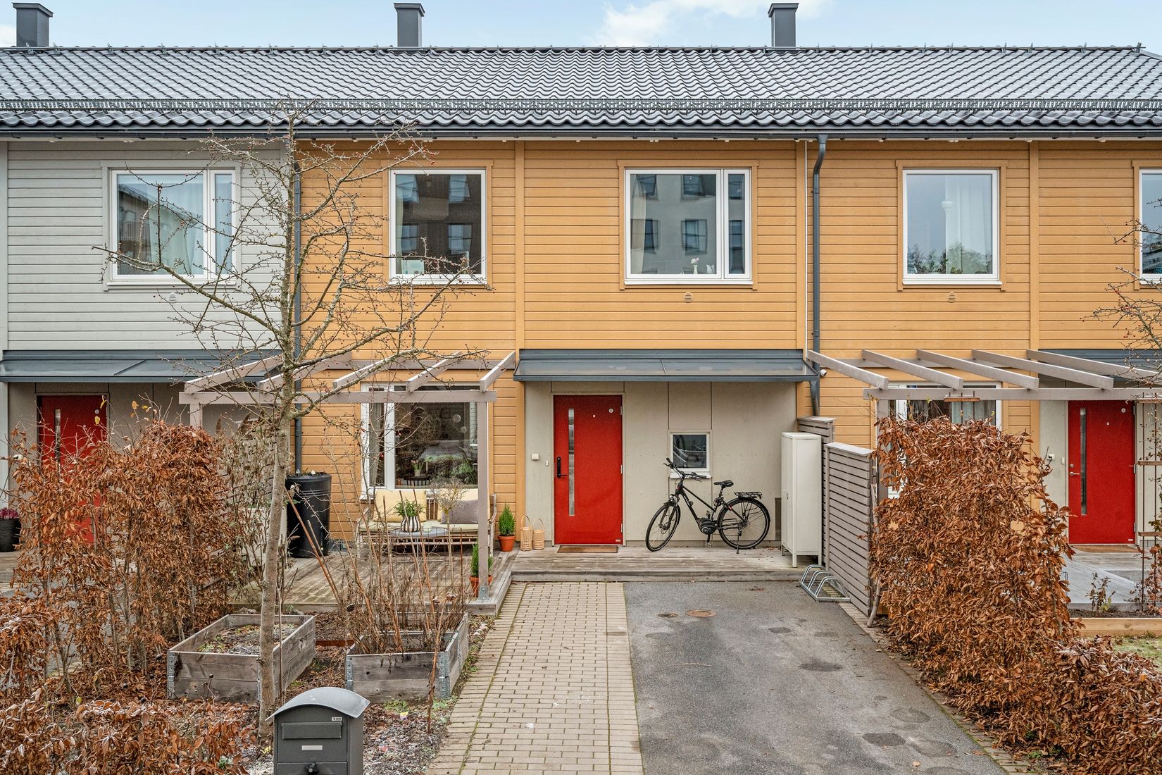 I omtyckta Tollare finner du detta stilsäkra bostadsrättsradhus som är en dröm för familjen. Detta välplanerade radhus i två plan stod klart 2018 och håller en mycket hög standard med smakfulla design- och inredningsval. Detta hem är perfekt för familjen då det erbjuder generösa sociala ytor, fyra sovrum samt därtill två badrum. Från vardagsrummet har du altandörr ut till husets trevliga och lättskötta tomt med två trädäckade altaner. Från din privata tomt har du en grind ut till gemensam yta med stor lekplats som ligger med ett skyddat läge så barnen själva kan ta sig hit. På framsidan av huset finns ytterligare uteplats med trädäckad altan med pergola. Radhusen har formgivits för att smälta in i den grönskade omgivningen. Husen är tidlösa med en modern arkitektur som kombinerar stil och funktion. Genomgående finner du fin vitpegmenterad ekparkett och stora fönster med fönsterbänkar i marmor. Boendekvalitet vet vi alla handlar lika mycket om det praktiska som om känslan. Detta hem gör er inte besvikna. Två badrum, ett med dusch och ett med badkar så du kan välja, därtill god förvaring som tillförsäkras av garderobsvägg i hallen, förvaring under trappan, walk-in-closet på övre plan, garderober i samtliga sovrum samt en vind med plats för massor och lite till. Sist men inte minst tvättmaskin och torktumlare i ett av badrummen. Rymligt förråd finns utomhus i anslutning till uteplatsen. På framsidan av huset finns plats för bilen. Har du flera bilar så kan du hyra ytterligare plats i området för 650 kr/mån. Föreningen har gjort en stadgeändring som gör att det är tillåtet att inreda vinden såsom bostadsyta (bygglov krävs).