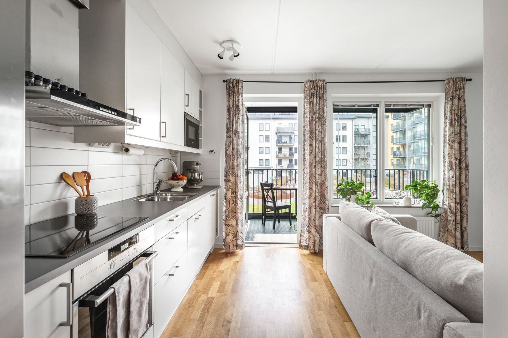 Välkommen till denna smart planerade ettan med sovalkov och en stor inglasad balkong! Här bor du med generösa ljusinsläpp, effektiv planlösning och ett lugnt läge mot den trevliga innergården. När du kliver in möts du av en rymlig och inbjudande hall med gott om förvaring tack vare en praktisk garderobsvägg. Direkt till höger ligger det stora och fräscha badrummet som är helkaklat och utrustat med moderna bekvämligheter som tvättmaskin, duschväggar i glas och goda avställningsytor. Vidare in i bostaden öppnar det ljusa och luftiga kök- och vardagsrummet upp sig. Här samsas sociala ytor med en naturligt avskild sovalkov som rymmer en större säng och skapar en ombonad och trevlig känsla. De vitmålade väggarna och de fina trägolven löper enhetligt genom hela lägenheten och skapar en modern och stilren helhet. Köket är fullutrustat med kyl, frys, diskmaskin, mikrovågsugn och goda arbetsytor. Från vardagsrummet når du den stora inglasade balkongen, och tack vare att den är inglasad blir det som ett extra rum att nyttja under sommar, höst och vintern.