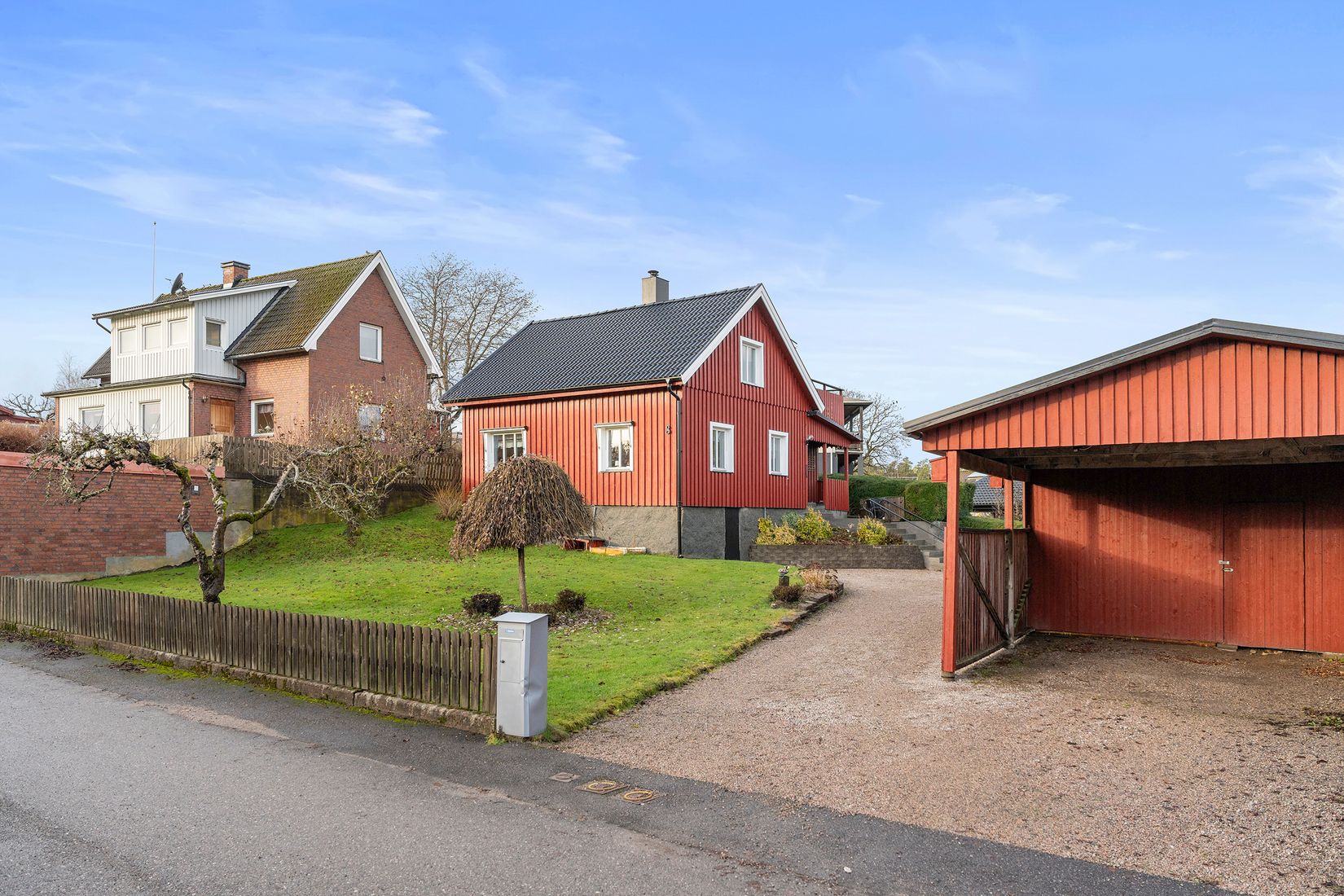 Ett stort plus är det moderna och energieffektiva luft-/vattenvärmesystemet som ger både hög komfort och lägre driftskostnader. Trädgården är lättskött med en mindre gräsmatta och ett par fina fruktträd. Dessutom finns garage med arbetsrum och extra förråd – perfekt för hobby, projekt eller förvaring. Som komplement erbjuds även en bred och praktisk carport.