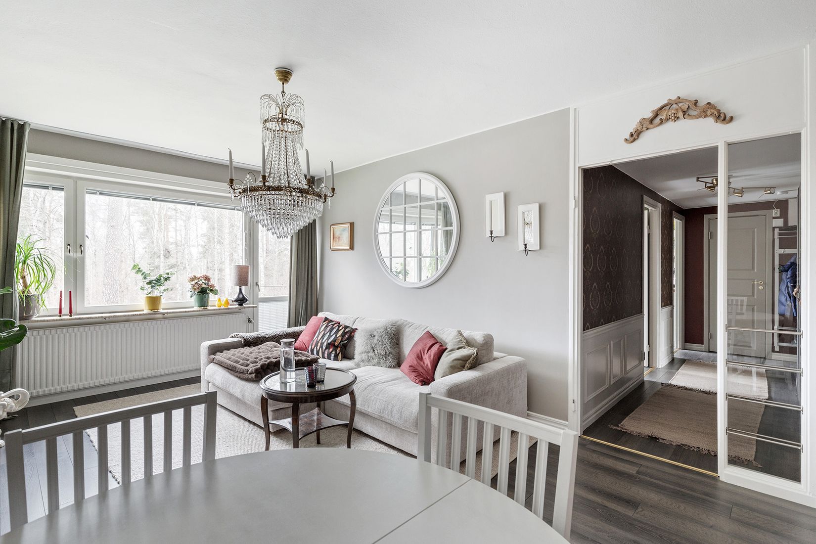 Välkommen till ett hem där ljuset, de genomgående sobra golven och utsikten mot naturen skapar en harmonisk och stilfull atmosfär i hela bostaden. Här möts du av en fräsch och omsorgsfullt omhändertagen lägenhet i mycket bra skick där varje rum har en naturlig funktion och en inbjudande känsla. Köket är renoverat i en modern ton med självklart utrymme för matplats vid fönstret. Vardagsrummet är luftigt och lättmöblerat med fransk balkong och fint ljusinsläpp. Sovrummet ligger avskilt i en lugn och privat del av bostaden. Planlösningen är genomtänkt och trivsam vilket gör hemmet lika attraktivt som första boende som för den som söker ett bekvämt och stilrent hem nära allt.
