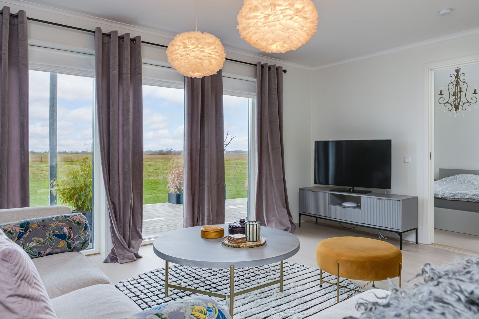 Från vardagsrummet når du uteplatsen i västerläge – en plats där du kan njuta av solnedgången över de öppna ängarna och låta naturen bli en del av din vardag.