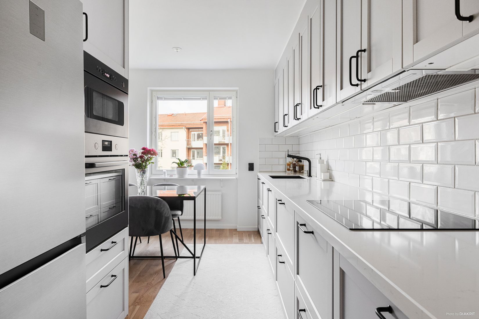 Bostaden bjuder på genomgående fina och nyrenoverade ytskikt med vacker askparkett och målade väggar i ljus nyans. Välkomnade hall med gott om förvaring i platsbyggda garderober, stilrent och modernt kök från 2021 som är utrustat induktionshäll, fläkt, kombinerad kyl och frys, integrerad varmluftugn och mikrovågsugn, gott om förvaring i ljusgråa köksluckor med trendiga svarta beslag samt diskmaskin och matplats vid fönster. Härligt vardagsrum med generöst ljusinsläpp från stora fönsterpartier och utgång till en balkong i soligt sydöstläge med utsikt över den lugna, grönskande innergården. Utöver detta så erbjuds ett rymligt sovrum med gott om förvaring i inbyggda och platsbyggda garderober samt ett helrenoverat badrum 2025 med kakel i en vacker beige nyans, golvvärme, handukstork och fönster för både ljusinsläpp och vädring.