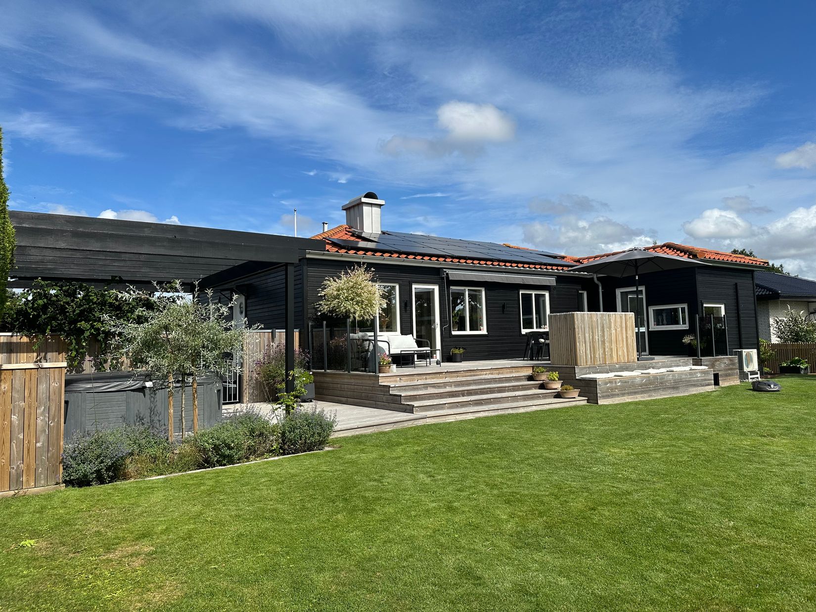 Härlig uteplats, perfekt för både avkoppling och lek, många soltimmar att njuta av. Den naturnära och barnvänliga miljön ger plats för lek och utforskning, samtidigt som det centrala läget gör det enkelt att nå stadens puls. Med en tomtarea på 990 kvadratmeter finns här gott om utrymme för både trädgårdsdrömmar och familjeliv.