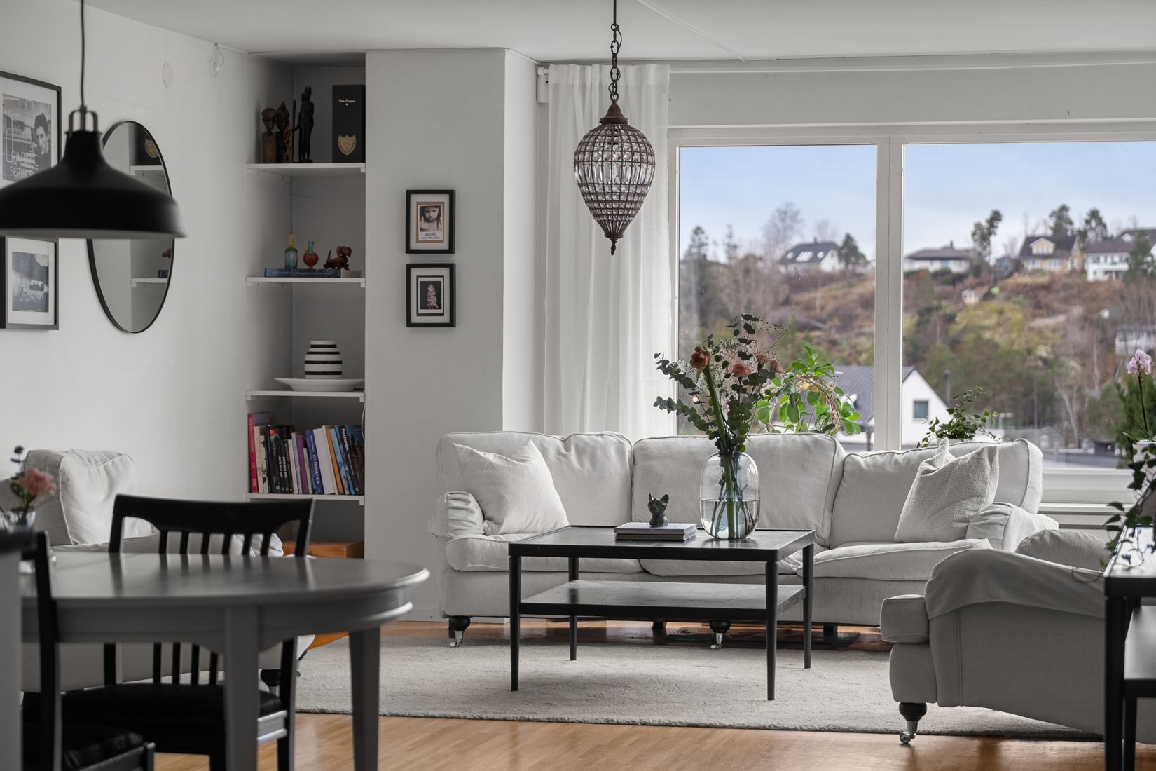 Rakt fram öppnar det härliga vardagsrummet upp sig som ligger i en öppen trivsam miljö med köket. Vardagsrummet ger ett mycket ljust och luftigt intryck tack vare stora fönsterpartier, utgång härifrån till en fin balkong i syd väst läge.