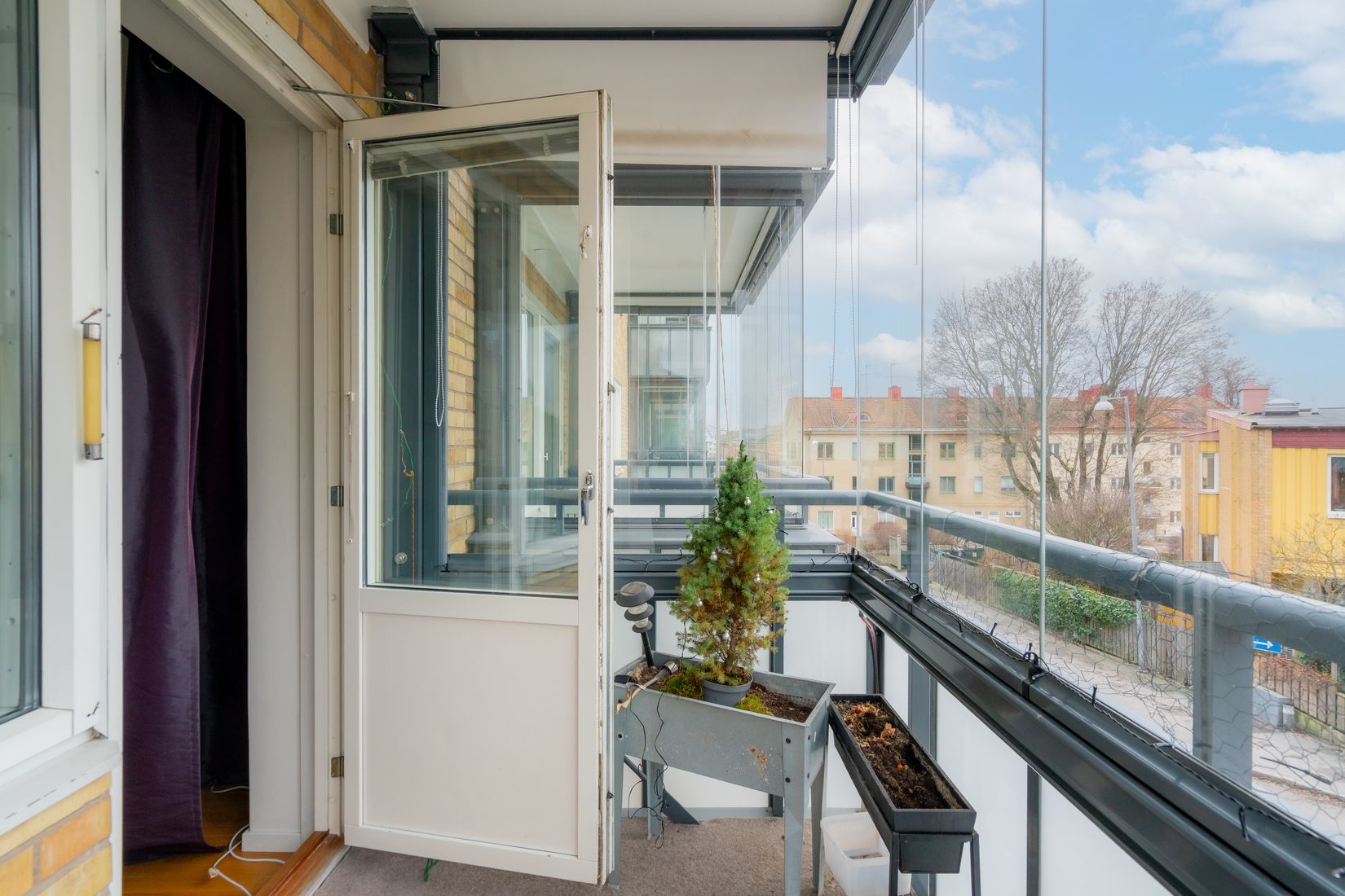 Vardagsrummet är ljust och luftigt med parkettgolv och ljusa väggar och erbjuder plats för både soffgrupp och matbord. Härifrån når du även balkongen som släpper in rikligt med dagsljus och ger rummet en extra trivsam atmosfär. Det större sovrummet är väl tilltaget med parkettgolv, målade väggar och utrustat med garderober. Det andra sovrummet har också parkettgolv och målade väggar.