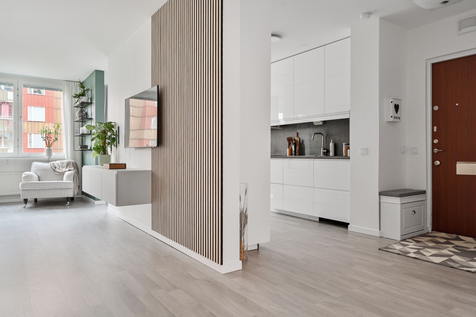 Välkommen till denna rymliga och välplanerade lägenhet om 76 kvadratmeter, belägen på våning två av sju, mitt i centrala Upplands Väsby. Lägenheten erbjuder tre rum med modern utrustning och har nyligen genomgått en omfattande renovering, vilket ger en fräsch och stilren känsla.