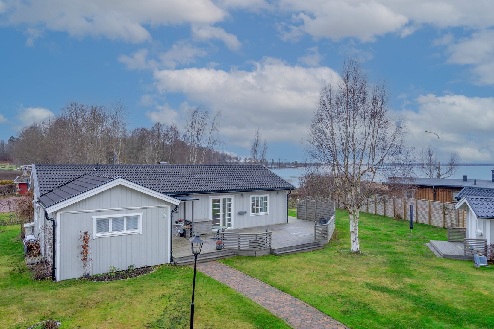 Läget är svårslaget. Med utsikt över sjön Örlen och med strand och bad alldeles intill huset bor du bokstavligen granne med vattnet. Här kombineras ett modernt boende med semesterkänsla året runt.