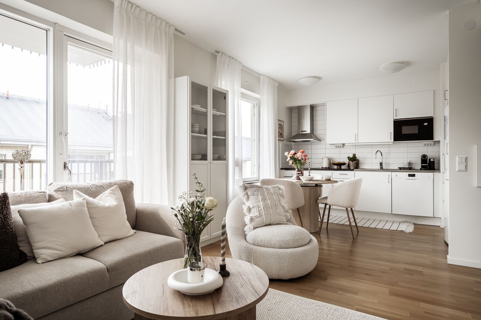 Modern och nyproducerade etta på Norra Fjädermolnsgatan 29! Här bor du om 38,2 rymliga och välplanerade kvadratmeter i genomgående hög standard. Här karaktäriseras bostaden av vackra materialval, högt i tak, generöst med ljusinsläpp och genomgående 3-stavsparkett av ek. Köket är välutrustat för vardagen i stilrent utförande med vita luckor och ligger i öppen anslutning till vardagsrummet vilket ger en rymlig och social planlösning. Sällskapsytorna förlängs av en balkong i västerläge med sol från mitt på dagen till sen kväll. Sängen har en naturlig plats i sovalkoven som med fördel kan skärmas av och rymma i förvaringsmöbel. Vidare finner du ett helkaklat badrum som utrustats med lyxig golvvärme och egen tvättavdelning. Till bostaden hör ett förråd.