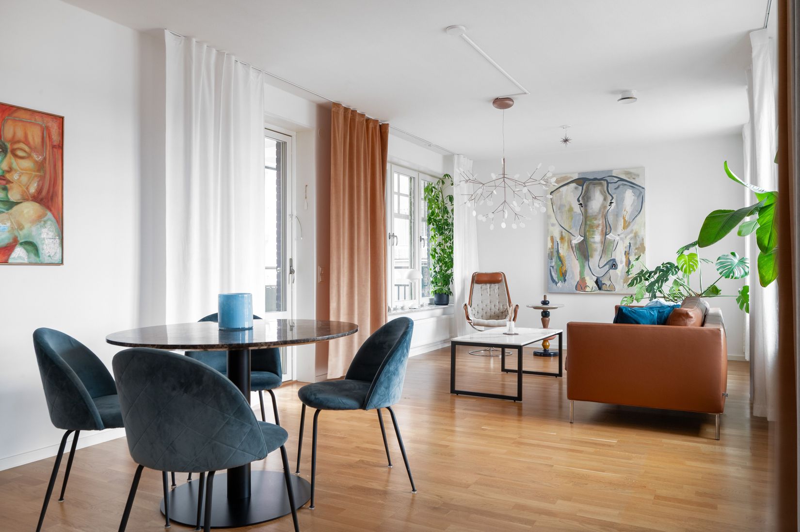 Med ett attraktivt läge på Krouthéns Gata finner du denna stilrena och charmiga trerummare belägen i ett fint hus om 95 kvadratmeter med egen stor balkong, moderna ytskikt såväl som en välplanerad och öppen planlösning. Bostaden har genomgående större ljusinsläpp som skapar en härlig rymd och är bekvämt belägen på våning två i ett hus med hiss. Fastigheten uppfördes av JM 2017 och lägenhetens påkostade materialval genomsyras i hela lägenheten