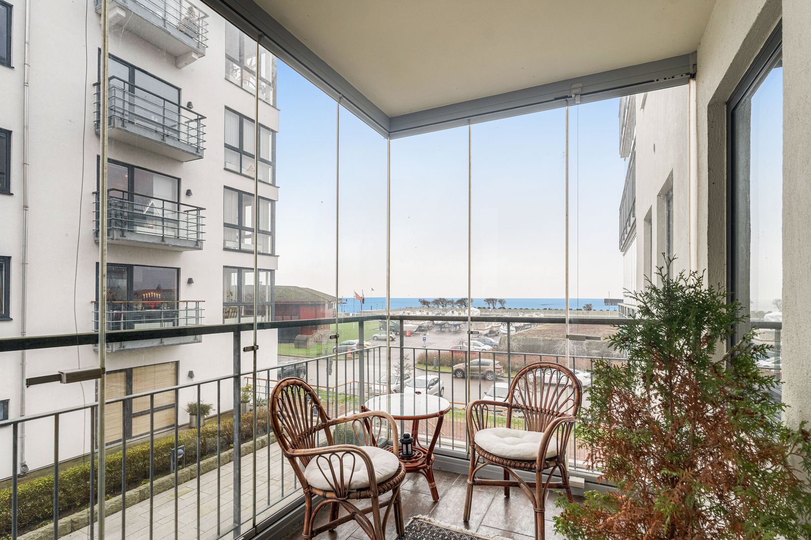 En av Nyhamns pärlor är äntligen till salu, en lägenhet som erbjuder öppna sociala ytor med tillhörande balkong med utsikt över Öresund och Landskrona Lutsbåtshamn.