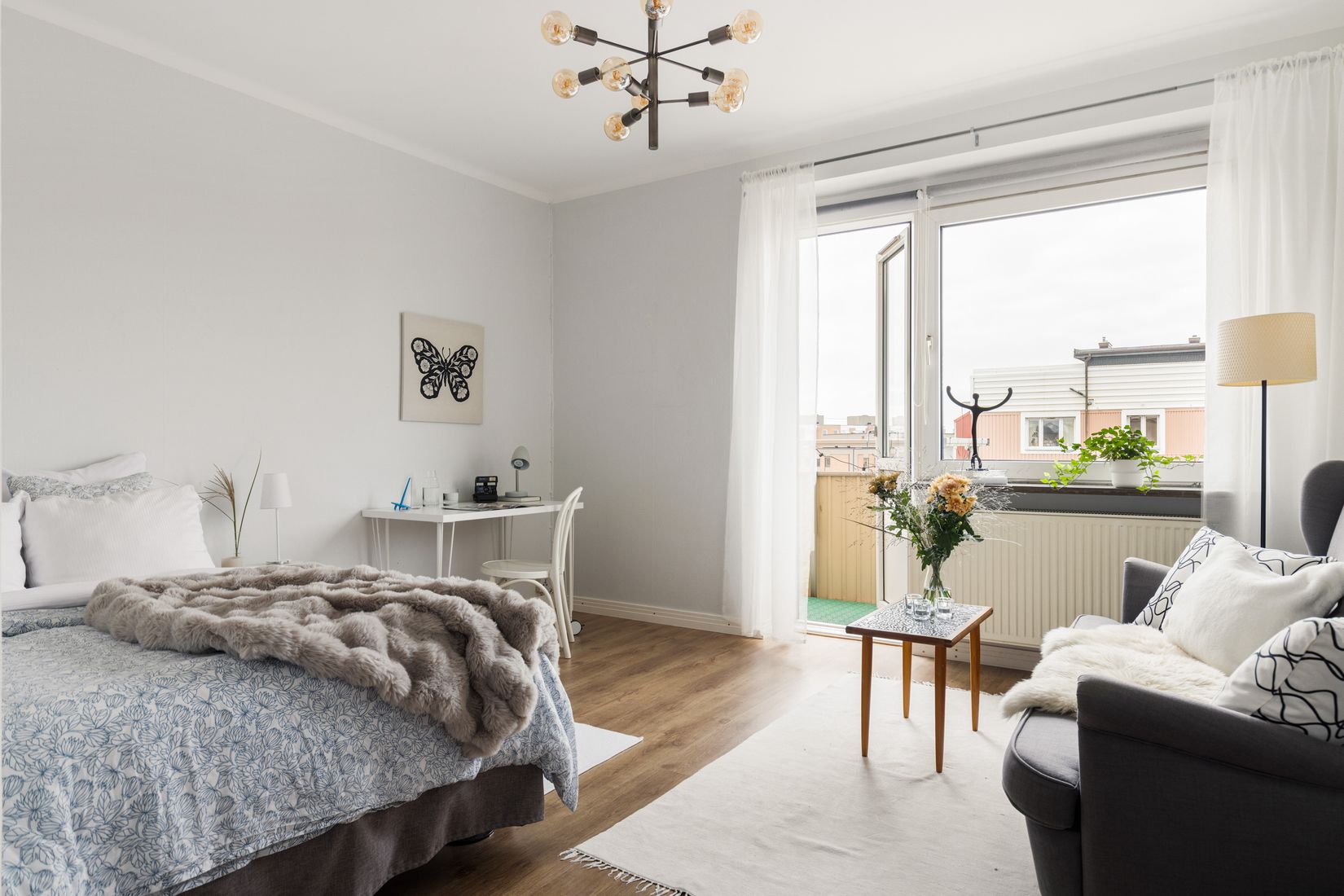 Denna charmiga enrummare ligger på sjätte våningen med hiss och balkong i väster där vi erbjuds trevliga attribut som tilltagen takhöjd, lamprosetter, renoverat kök och bad m.m. Väldisponerad bostad där varenda kvadratmeter används med renoverat badrum, lättmöblerat vardagsrum för soffa och säng, bra kök med gott om förvaring med matplats samt rymlig hall med god förvaring. Det tillhör även två förråd till bostaden, ett i källaren och ett på vinden. Bostaden såväl som läget lämpar sig väl för studenten, singeln eller paret. Här erbjuds utmärkta förutsättningar för att uppleva det bästa av Malmö.