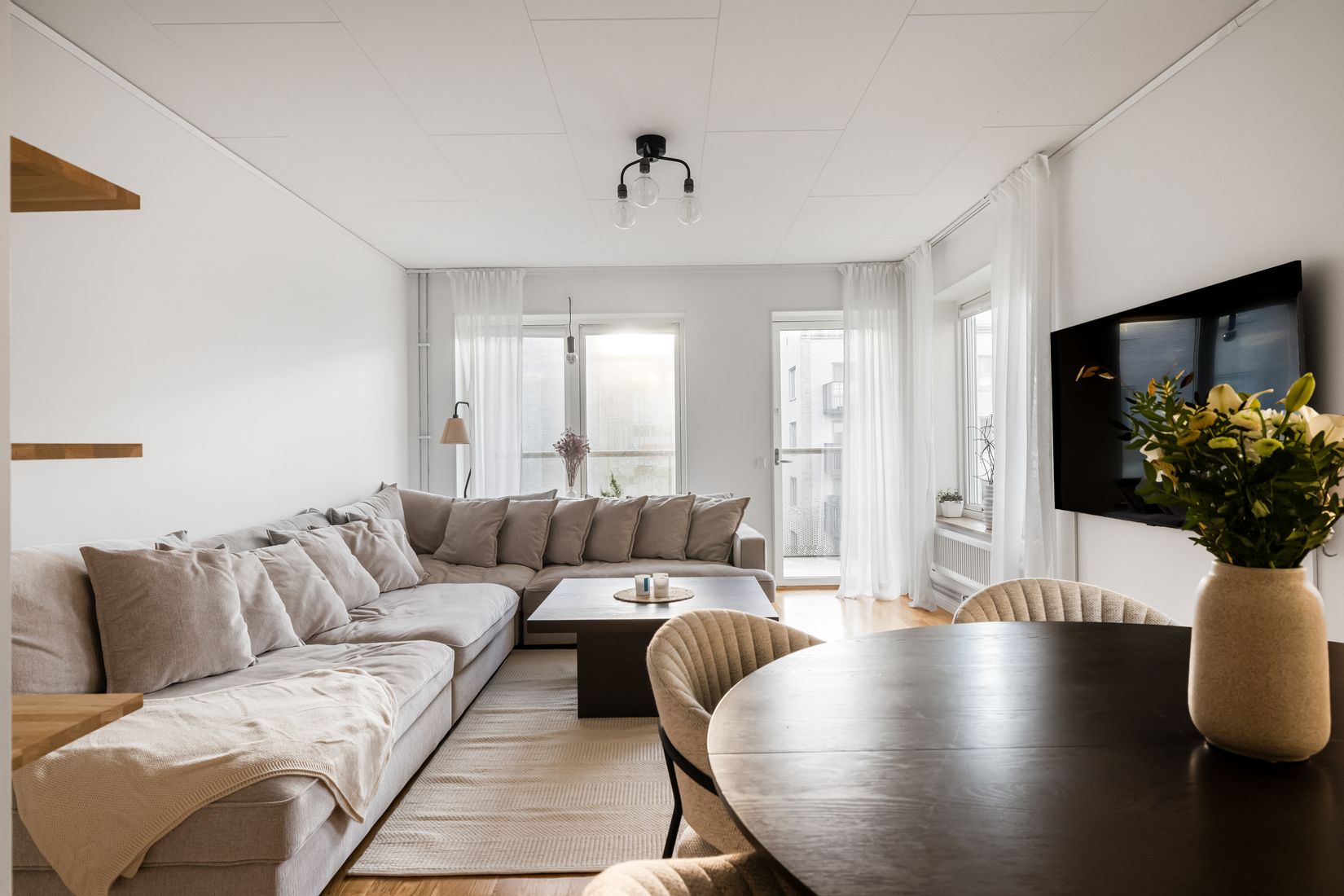 Välplanerad, stor och modern tvåa med gavelläge erbjuds nu på Långängen 8B. Här finner du rymliga samt lättmöblerade ytor om totalt 65 kvm som med fördel kan nyttjas som en 3:a om önskemål finns. Boendet präglas av generöst ljusinsläpp från tre väderstreck, ljusa ytskikt och högt läge. Väl tilltaget sovrum som rymmer en större säng samt extra förvaring, allt för en god natts sömn. I anslutning till sovrummet finns bostadens rymliga klädkammare, fönstret bidrar till att det går lika bra att använda som kontor eller barnrum. Vardagsrummet och det stilrena köket ligger i öppen anslutning vilket ger stora sällskapsytor som förlängs av utgången till balkongen i söderläge, här kan du njuta av många soltimmar och en rogivande utsikt mot den lugna innergården. Vidare finner du ett helkaklat badrum i högstandard med egen tvättavdelning. Till bostaden hör ett källarförråd.