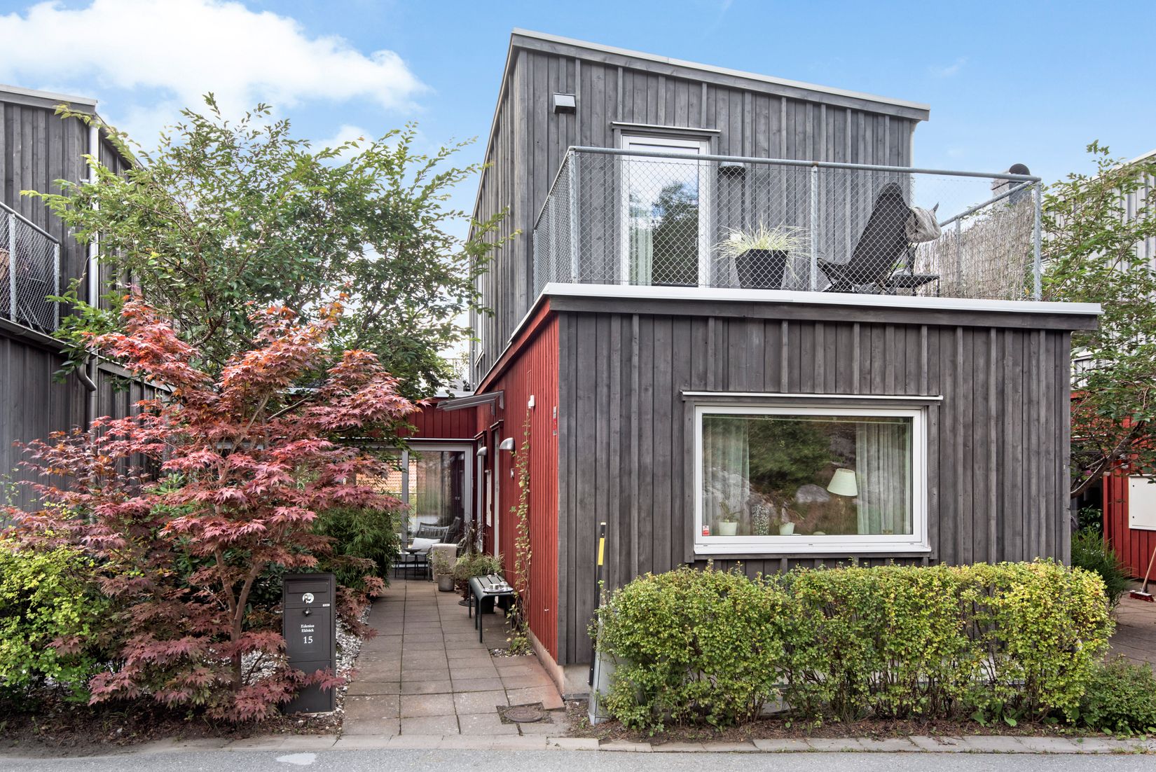 Nu har vi nöjet att presentera ett modernt radhus om 157 kvm högst upp på en lugn återvändsgata i Höjdhagen. Ett boende som kombinerar funktion med spännande arkitektur och generöst ljusinsläpp genom stora fönster och glasade skjutdörrar. En inbjudande atriumgård välkomnar oss till entréplan där vi finner ett exklusivt kök och öppna sällskapsytor med mysig braskamin, badrum och sovrum. På övre plan finner vi ytterligare ett badrum, ett sovrum och en fin skrivbordshörna invid fönstret mot gården. På nedre plan finns ett stort hobbyrum, två sovrum och ett extra allrum - ett våningsplan med flexibilitet att disponeras utifrån era önskemål. Bostaden är smakfullt renoverad och väl omhändertagen av en familj som har älskat huset från första stund. Ekparkettgolven har slipats efter fotograferingen av bostaden. Förutom den mysiga atriumgården finns här även flera utomhusmiljöer att njuta av såsom en balkong från vardagsrum/kök och två takterrasser varav den stora stora terrassen ligger i soligt sydvästläge. Det finns även en trädgård med liten gräsmatta och lummig grönska. Ljuvliga platser för både avkoppling och sociala tillställningar. Bostaden värms upp med fjärrvärme och vattenburen golvvärme.