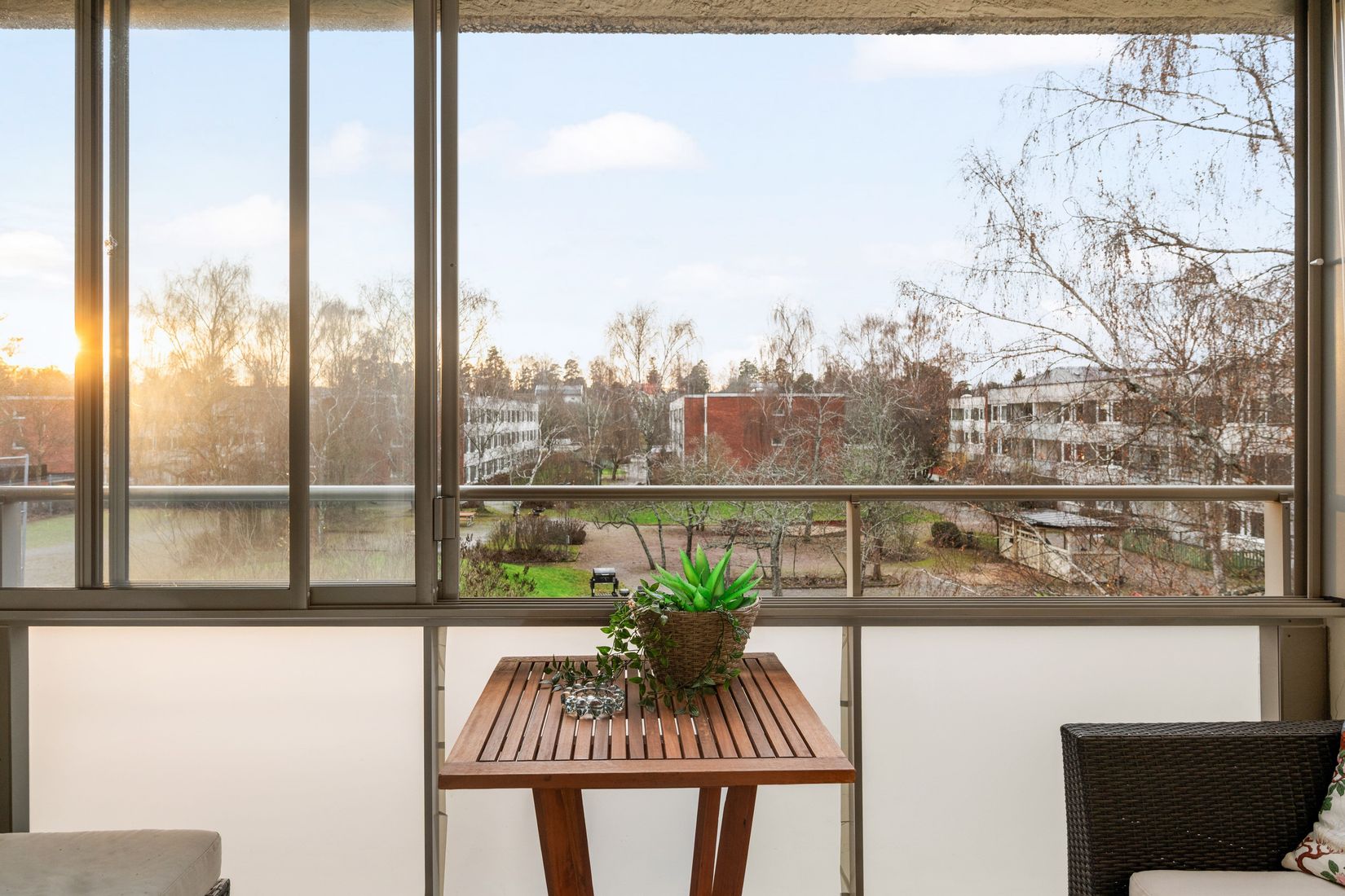 Välkommen till denna ljusa och rymliga trea högst upp i huset med stora fönsterpartier i flera väderstreck som skapar ett härligt ljusflöde. Lägenhetens planlösning är mycket välplanerad med stora sällskapsytor. Vardagsrummet har ett fritt blickfång över den barnvänliga gården i rakt sydvästläge och öppnar upp mot den rymliga inglasade balkongen, perfekt för både matbord, stolar och planteringar, här maximeras användningen tack vare inglasningen.