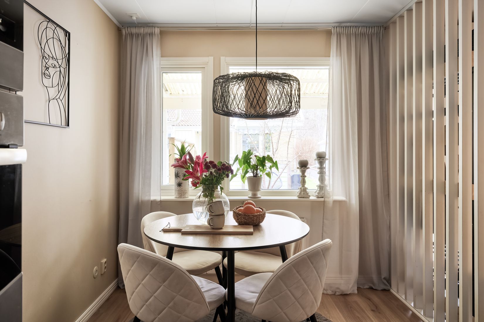 Välkommen till Odengatan 86 – ett mycket trivsamt bostadsrättsradhus om 102 kvm i två plan, beläget i ett lugnt och efterfrågat område i Östra Ängabo. Här får du inte bara ett funktionellt och välskött boende, utan även två genomtänkta uteplatser som förlänger hemmets sociala ytor. Framsidan bjuder på varm eftermiddagssol medan baksidan, med ett av områdets mer insynsskyddade altaner, bjuder på förmiddagssol. Båda altanerna byggdes 2020 och ger fina möjligheter till både avkoppling och umgänge.