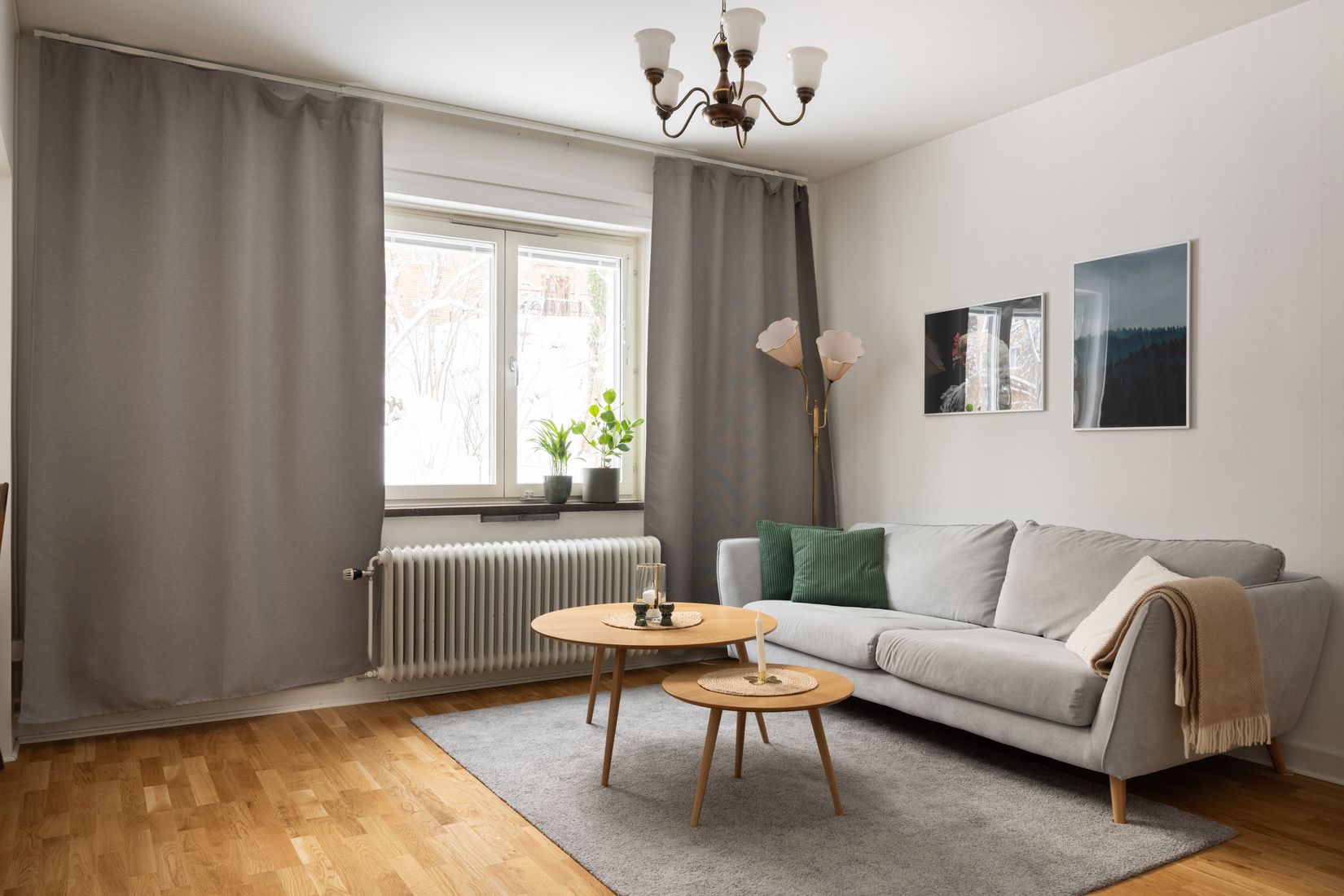 Vardagsrum och kök möts i en öppen planlösning, med plats för både matbord och soffgrupp. Här skapas en naturlig samlingsplats för vardag och umgänge, samtidigt som rummet kan anpassas efter behov, exempelvis med en arbetsplats för den som arbetar hemifrån. I anslutning finns en praktisk klädkammare med goda förvaringsmöjligheter. Sovrummet är rymligt och har plats för dubbelsäng samt förvaring. Badrummet är stilrent renoverat i samband med stambytet och utrustat med dusch.
