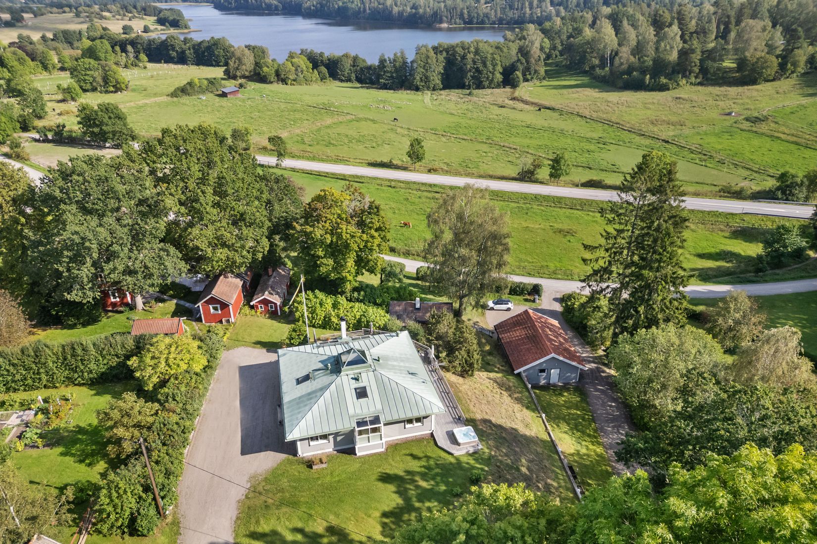 Fastigheten kompletteras med maskinhall och vedbod i faluröd stil samt ett uppvärmt dubbelgarage med indraget vatten vid infarten.