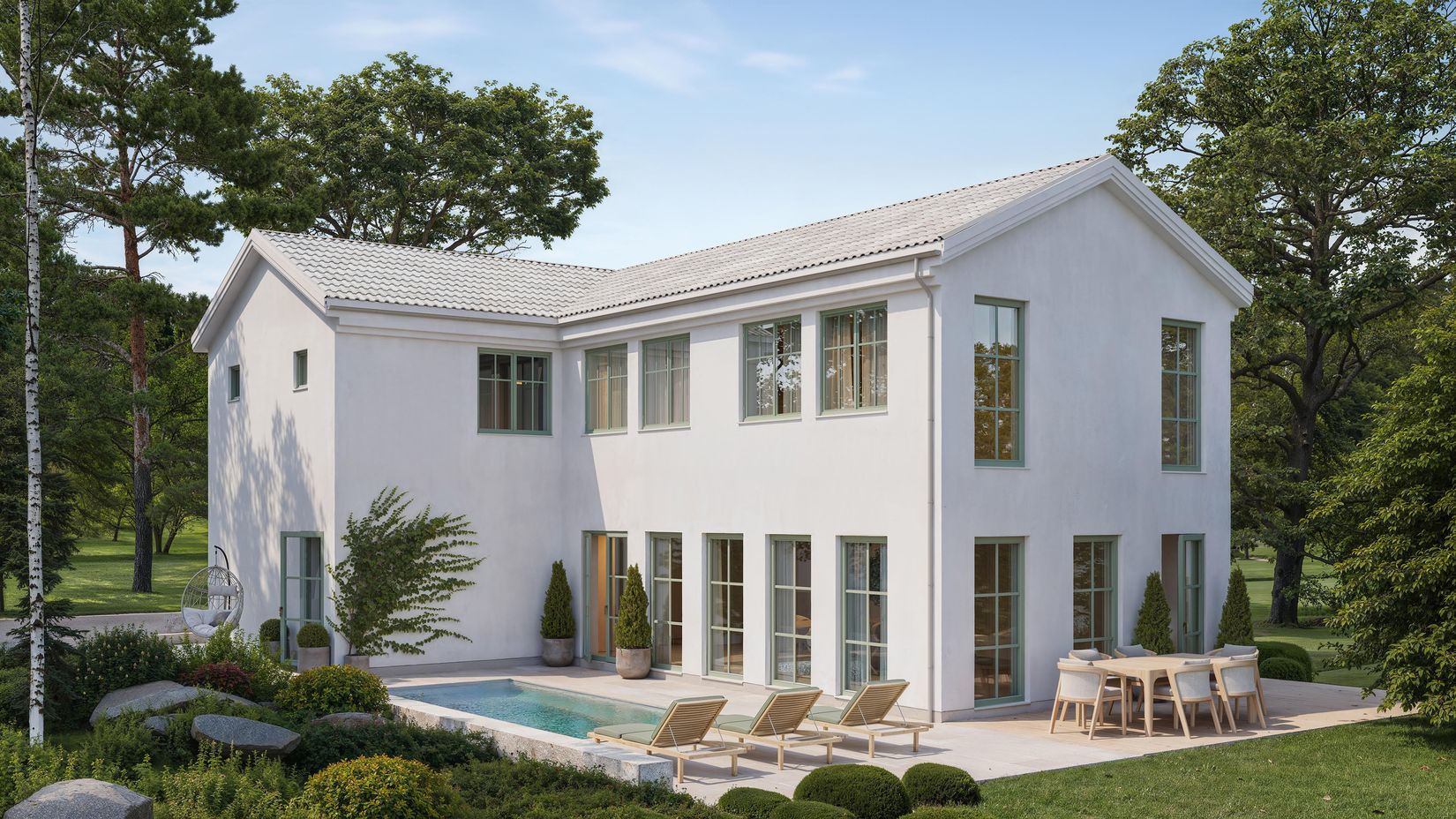 Här får ni bygga på 25 % av tomtytan i två plan så länge ni håller er 4,5 meter från grannarnas tomtgränser och anpassar er efter tomten och omgivningen.