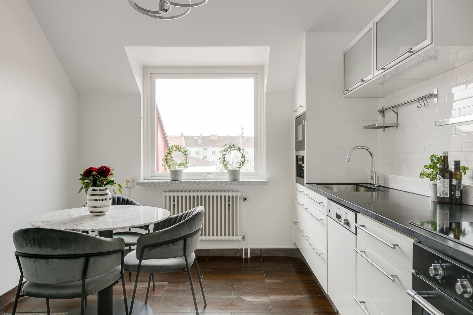 Högst upp i huset finner du denna eleganta och påkostade vindsvåning om 54 kvm – ett hem som andas kvalitet, komfort och modern elegans. Här erbjuds ett inflyttningsklart boende med genomtänkta materialval, generöst ljusinsläpp och en harmonisk helhet där varje detalj sitter på sin plats.