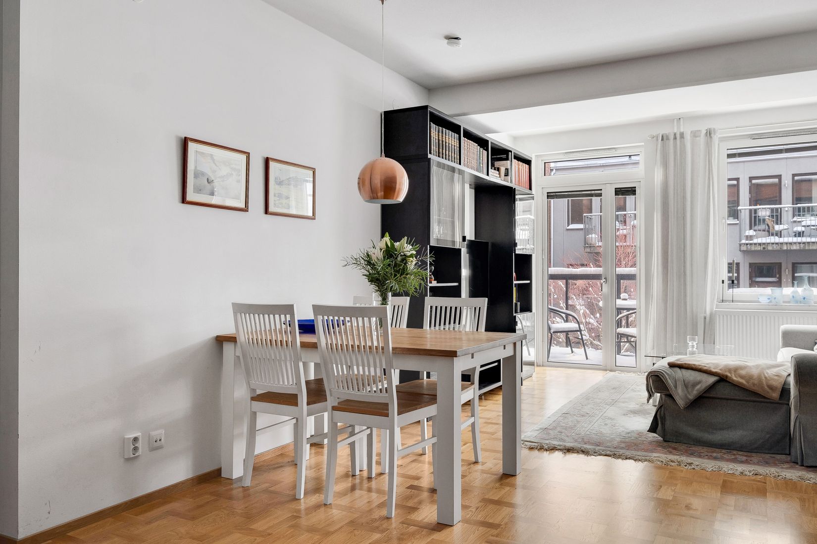 Ljus och öppen planlösning mellan kök och vardagsrum