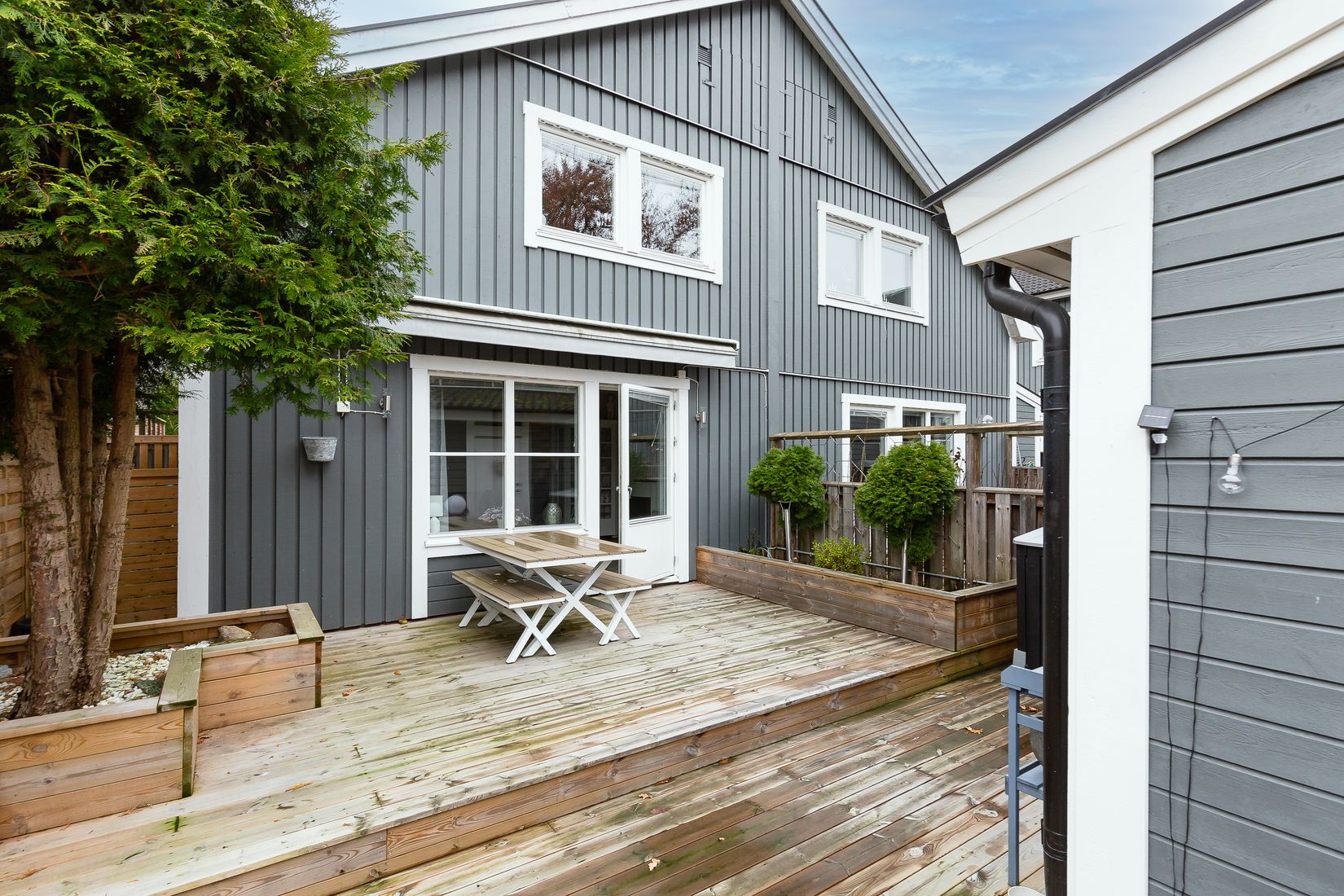 Bostaden har renoverats med tidlösa materialval där du finner två helkaklade badrum och ett mycket trevligt kök med fin maskinpark. Vidare har bostaden en imponerande uteplats med en stor altan på både framsidan och baksidan av huset, perfekt för att njuta av många soltimmar. Den insynsskyddade altanen på baksidan är belägen i öster, medan altanen på framsidan vetter mot väster. Barnvänligt läge och närhet till kommunikationer gör detta till ett idealiskt boende för familjen.