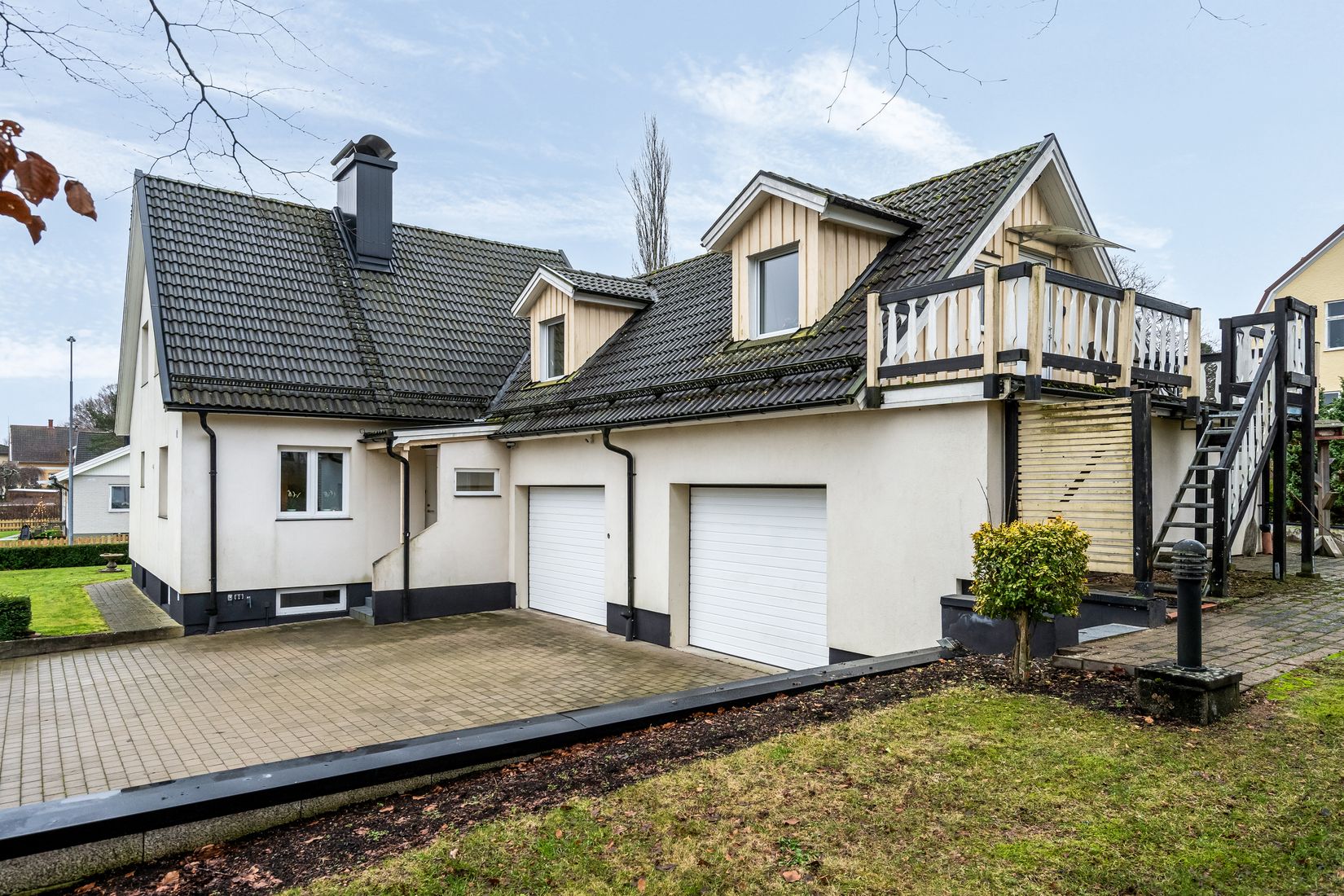 Det uppvärmda dubbelgaraget är en dröm för bilentusiasten eller hemmafixaren – här kan du mecka och skapa året runt. Den stora, stenlagda uppfarten rymmer flera bilar och ger ett välkomnande första intryck.