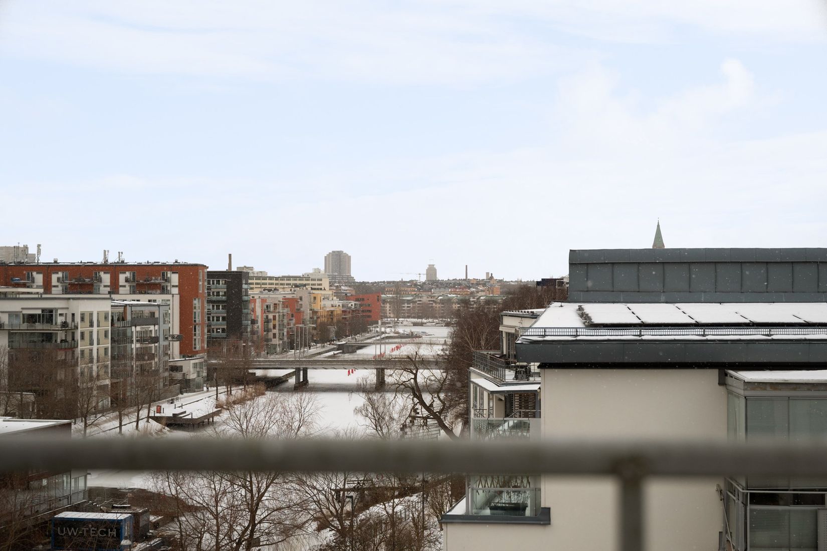 Välkommen till en av Hammarby Sjöstads absolut största och mest flexibla bostäder – en genomtänkt insynsskyddad etagelägenhet om hela 164 m², belägen högst upp i fastigheten på våning 4 och 5 av 5, med hiss direkt upp till entrén. Här bor du helt utan insyn, i lugnt läge längst in på återvändsgata, där det ofta finns ledig parkering på gatan, men samtidigt med Sjöstadens puls, service och kommunikationer runt hörnet.