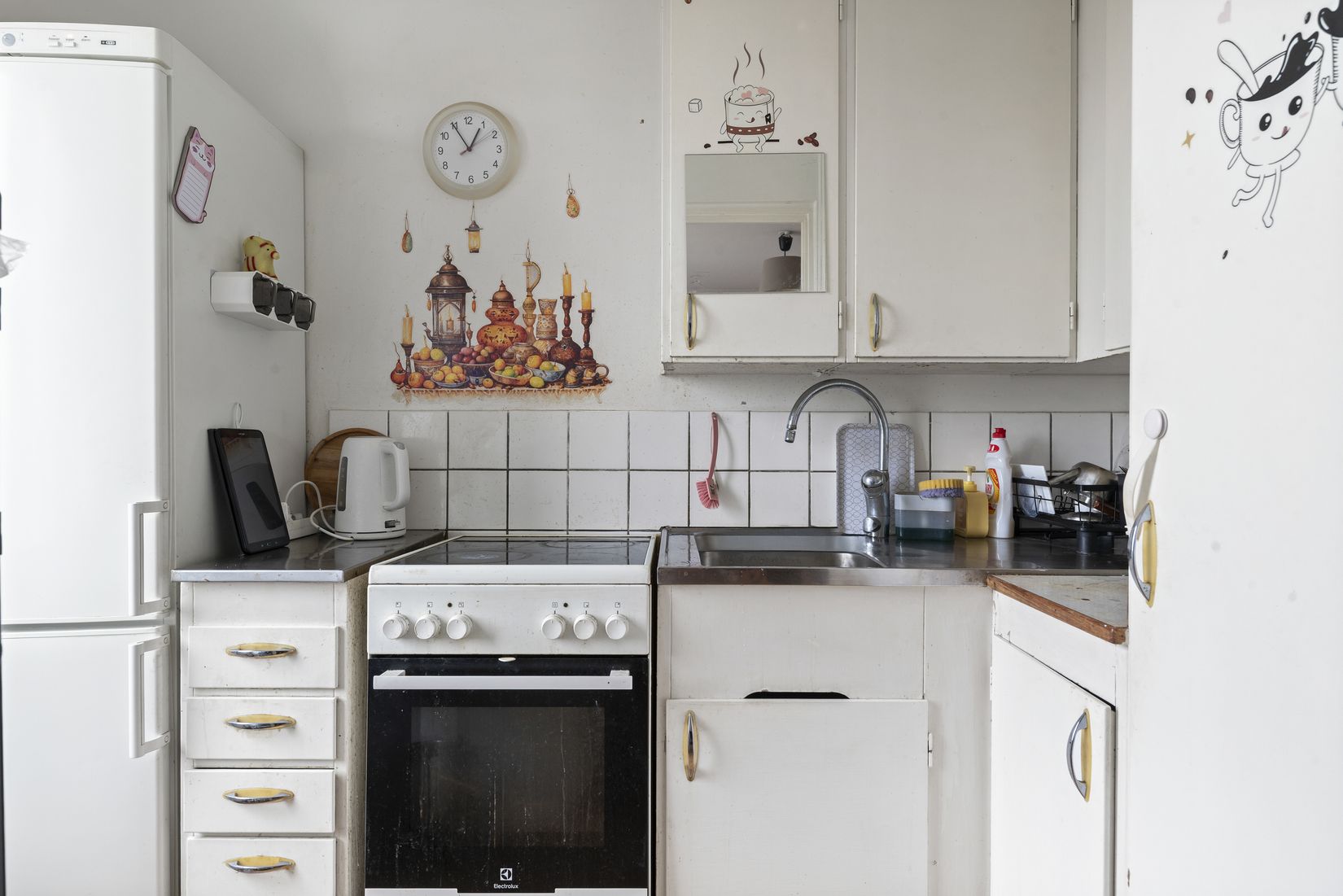 Köket är yteffektivt och tidlöst utformat med goda arbetsytor och bra förvaring. Sovalkoven är smart placerad och ger en naturlig avskildhet för sängen. I hallen finns en rymlig klädkammare som erbjuder utmärkta förvaringsmöjligheter. Badrummet är helkaklat i ljusa färger och utrustat med dusch.