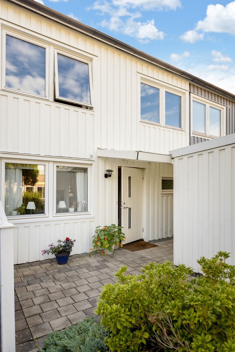 Varmt välkomna till en fint planerad bostad i trivsamma Hammerö. Den välkomnande entrén med vackra planteringar och ett rymligt förråd leder er in till bostaden. Innanför dörren finns utrymme att hänga av sig ytterkläder och ytterligare förvaring finns längre in i bostaden där en klädkammare är placerad. Direkt till vänster om hallen öppnar sig köket upp med utrymme för ett matbord eller en köksö. Köket har ett klassiskt uttryck genom vita över- och underskåp som ger plats för köksredskap och maskiner. Köket är utrustat med diskmaskin, spis med ugn, köksfläkt samt kyl och frys. Via köket eller via hallen kan ni ta er vidare till det trevliga sällskapsrummet där de stora fönsterpartierna låter ljuset flöda in. Altandörren leder er vidare ut i den grönskande trädgården som ger möjlighet till såväl lek och bus som odling. Altanen är delvis skyddad under tak och en praktisk markis håller borta både regn och sol om så önskas. En underbar plats att samlas för grill och trevliga stunder. Sällskapsrummet är rymligt och låter er inreda med soffmöbel, mediabänk, fåtölj och ett middagsbord att smalas kring med familj och vänner.
