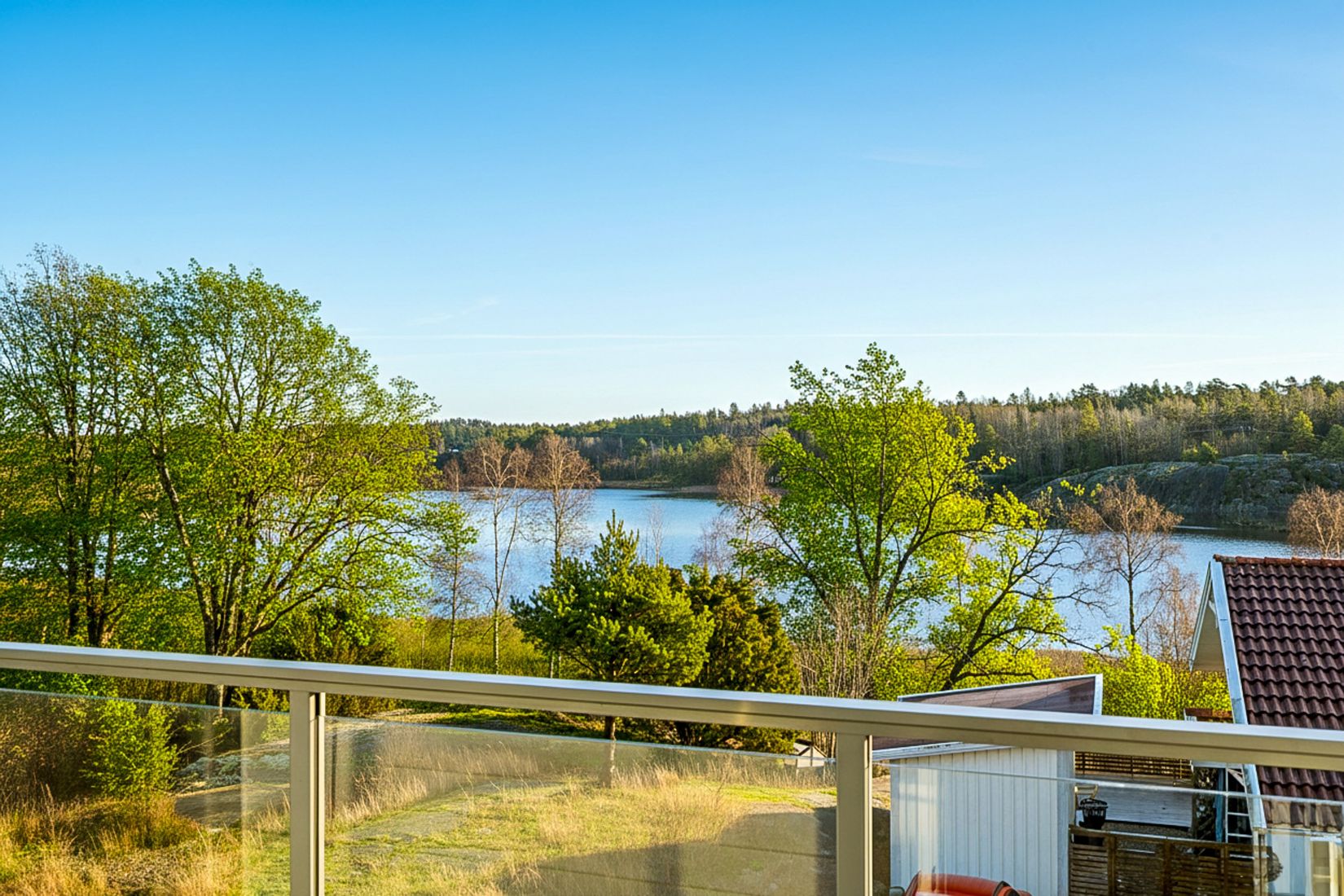 Vardagsrummet är rymligt och lättmöblerat med plats för både större soffgrupp och möbler. Härifrån nås även balkongen, där det upphöjda läget ger en vacker och rogivande utsikt över vattnet, med sol större delen av dagen. En perfekt plats för morgonkaffet, middagar eller avkoppling.