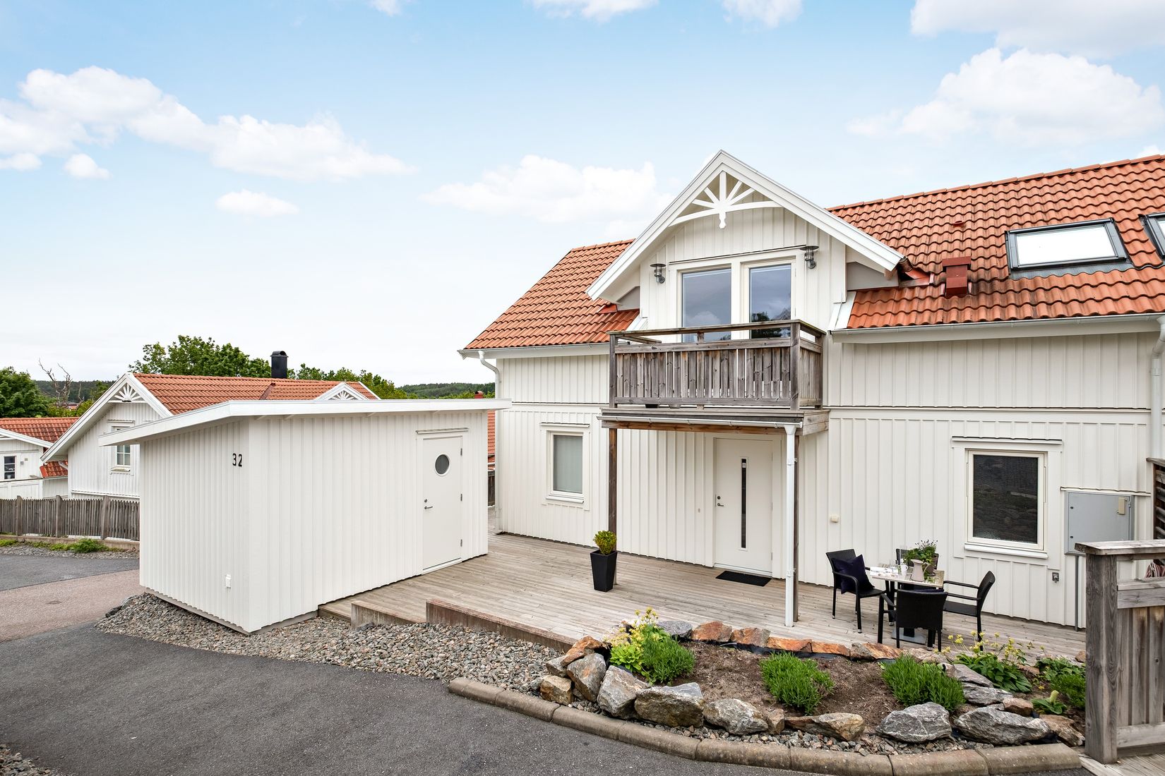 Framsidan bjuder på morgonsol, medan baksidan ger skön eftermiddags- och kvällssol.